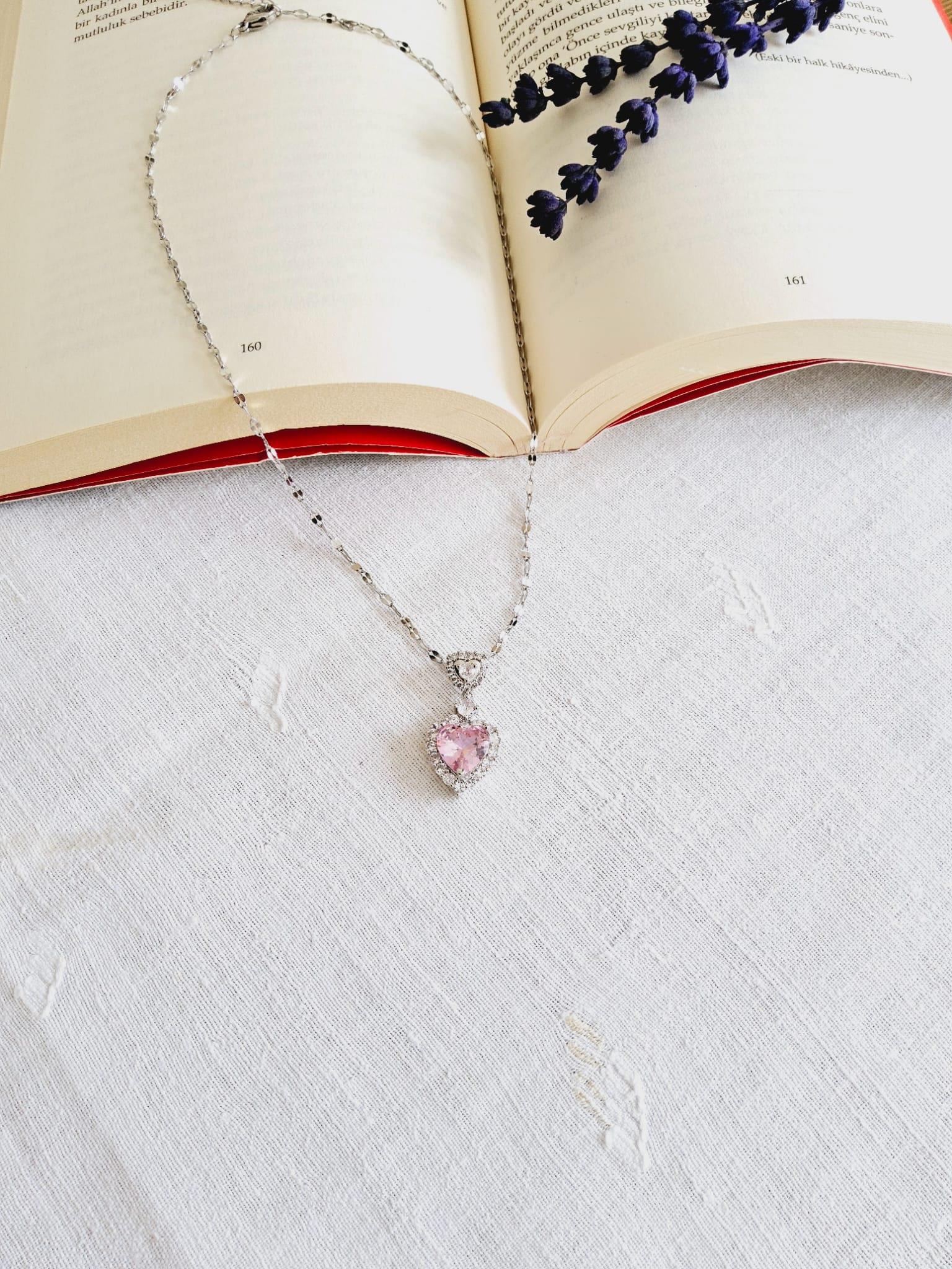 0106237 Pembe Taşlı Pandora Kolye (Gümüş)