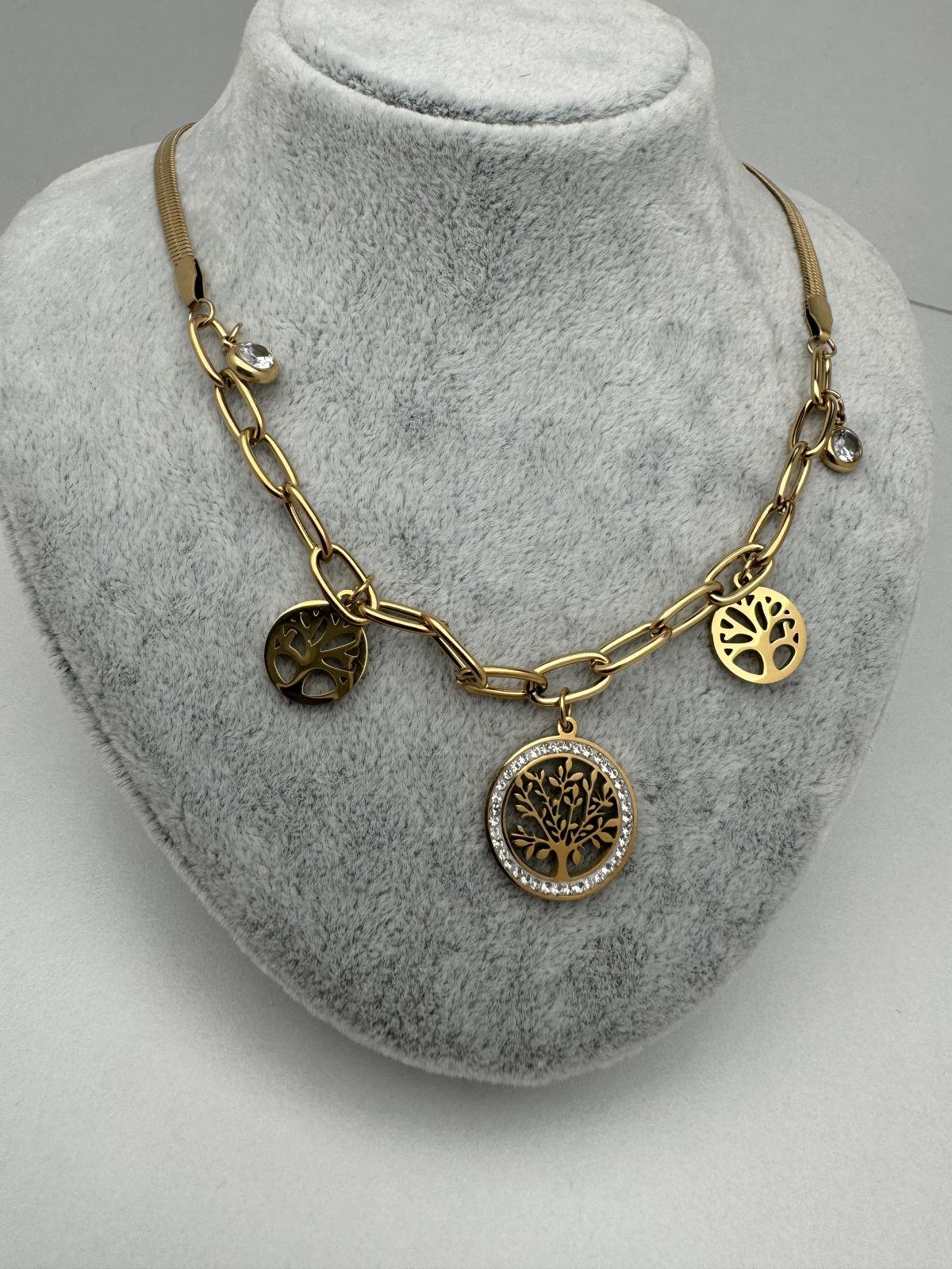 0106263 Hayat Ağacı Çelik Kolye (Gold)