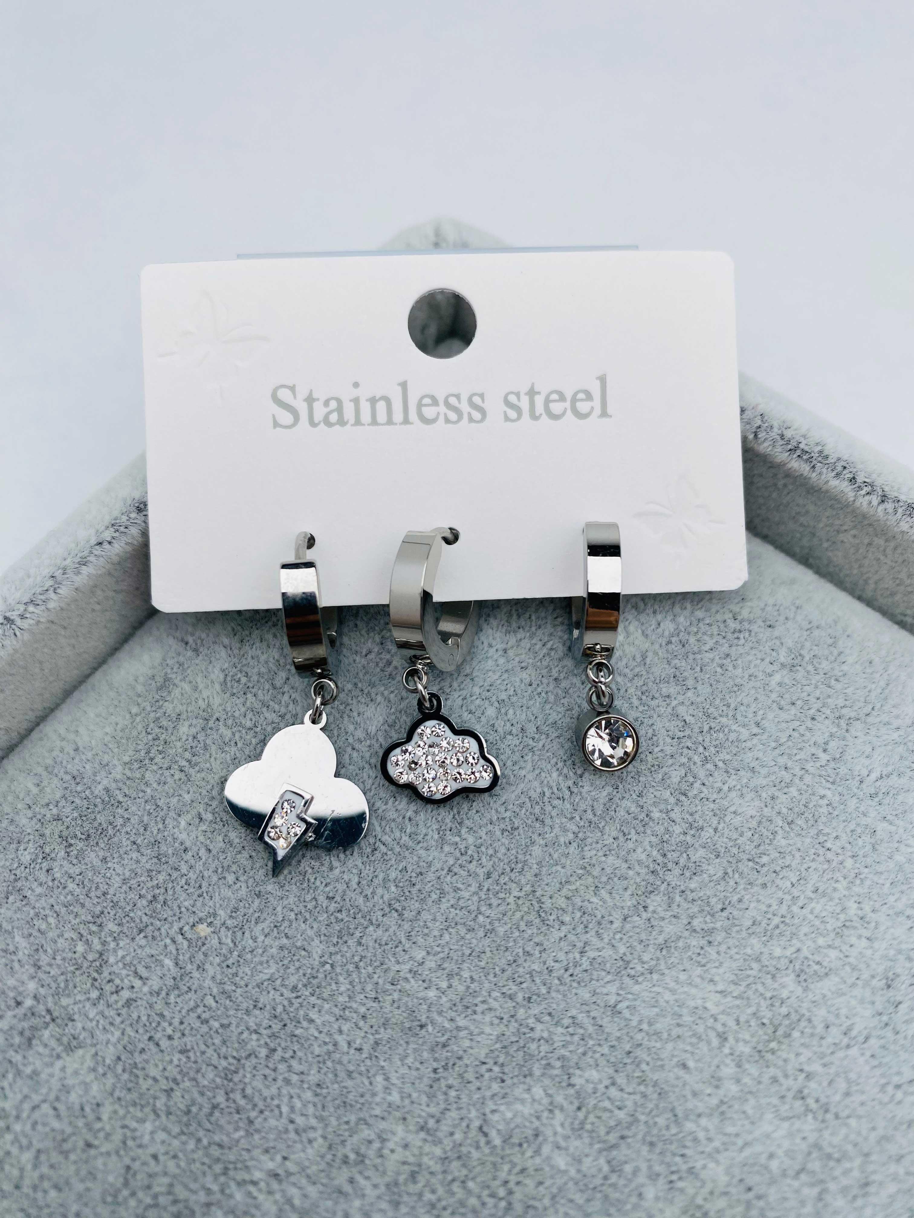 3'lü Set Çelik Küpe (Gümüş) KP13532-1