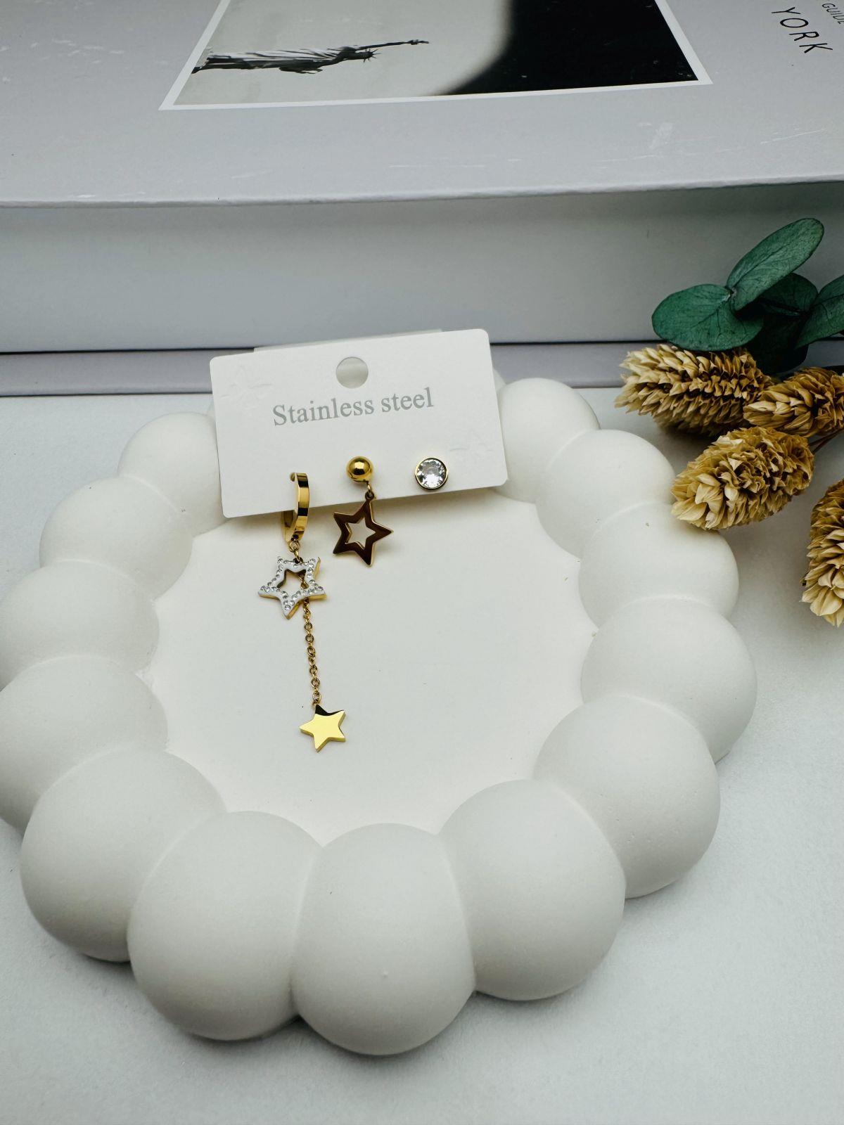 3'Lü yıldız çelik küpe KP352-01 (Gold))