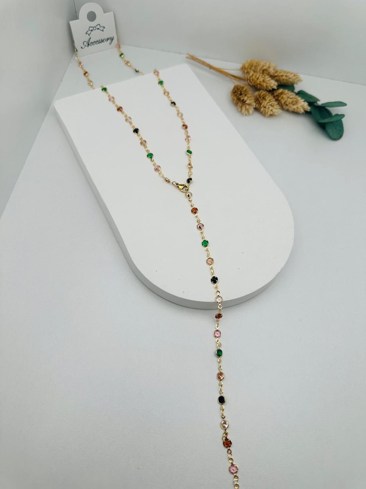 60 cm Renkli Taşlı Tasarım Bijuteri Y Kolye (Gold) 010703