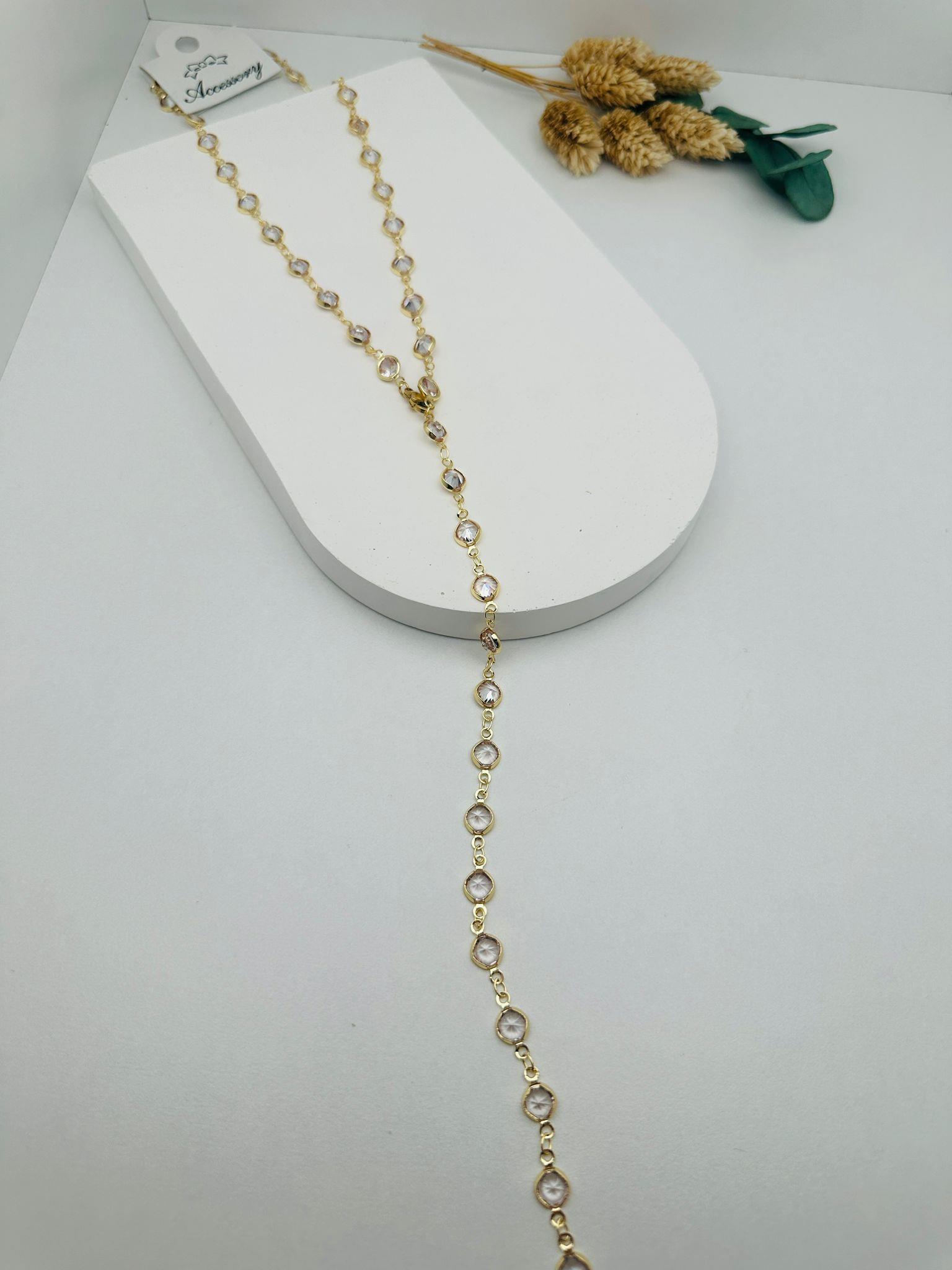 60 cm Taşlı Tasarım Y Kolye (Gold) 010701