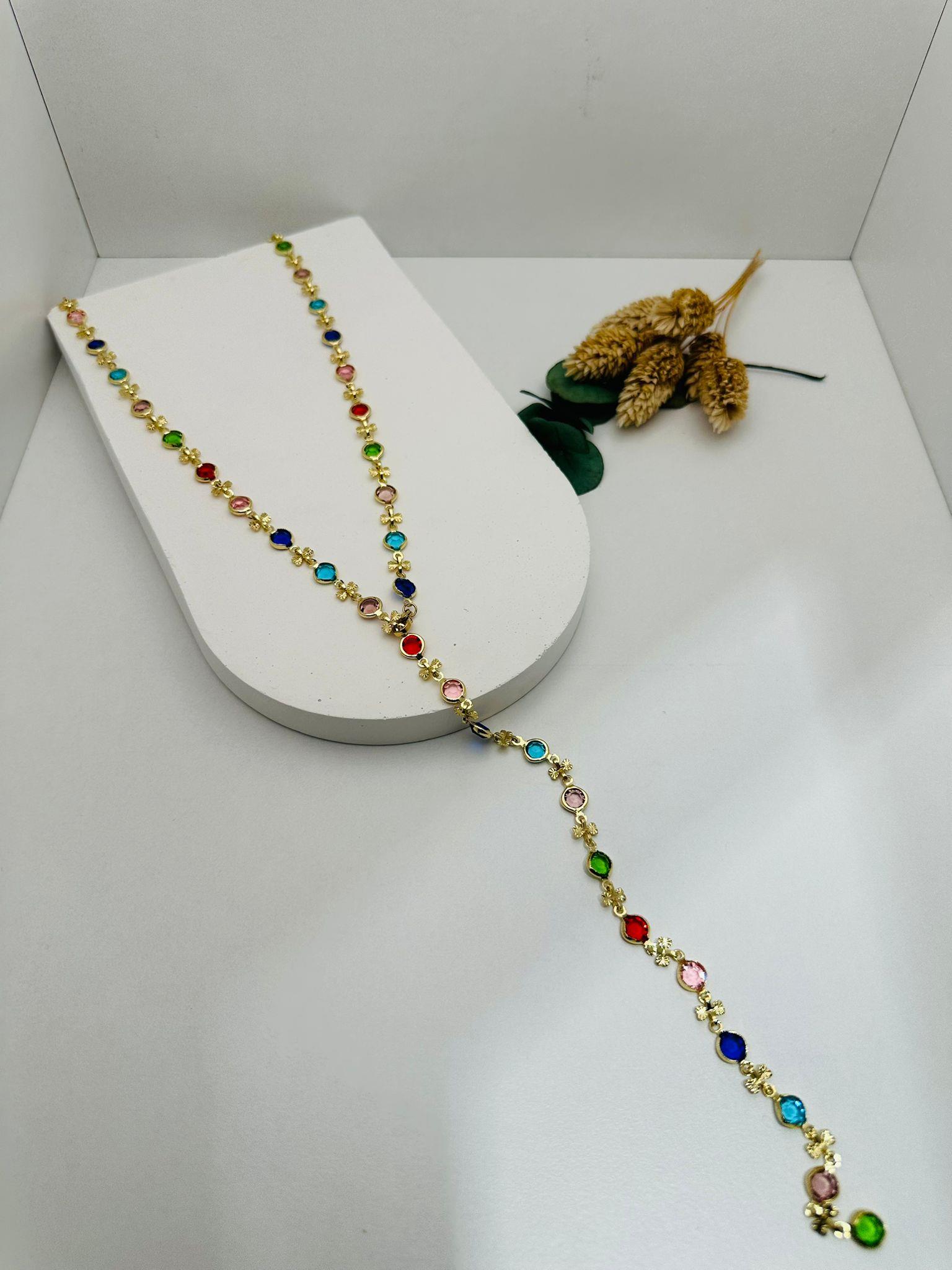 60 cm Taşlı Tasarım Bijuteri Y Kolye (Gold) 010720