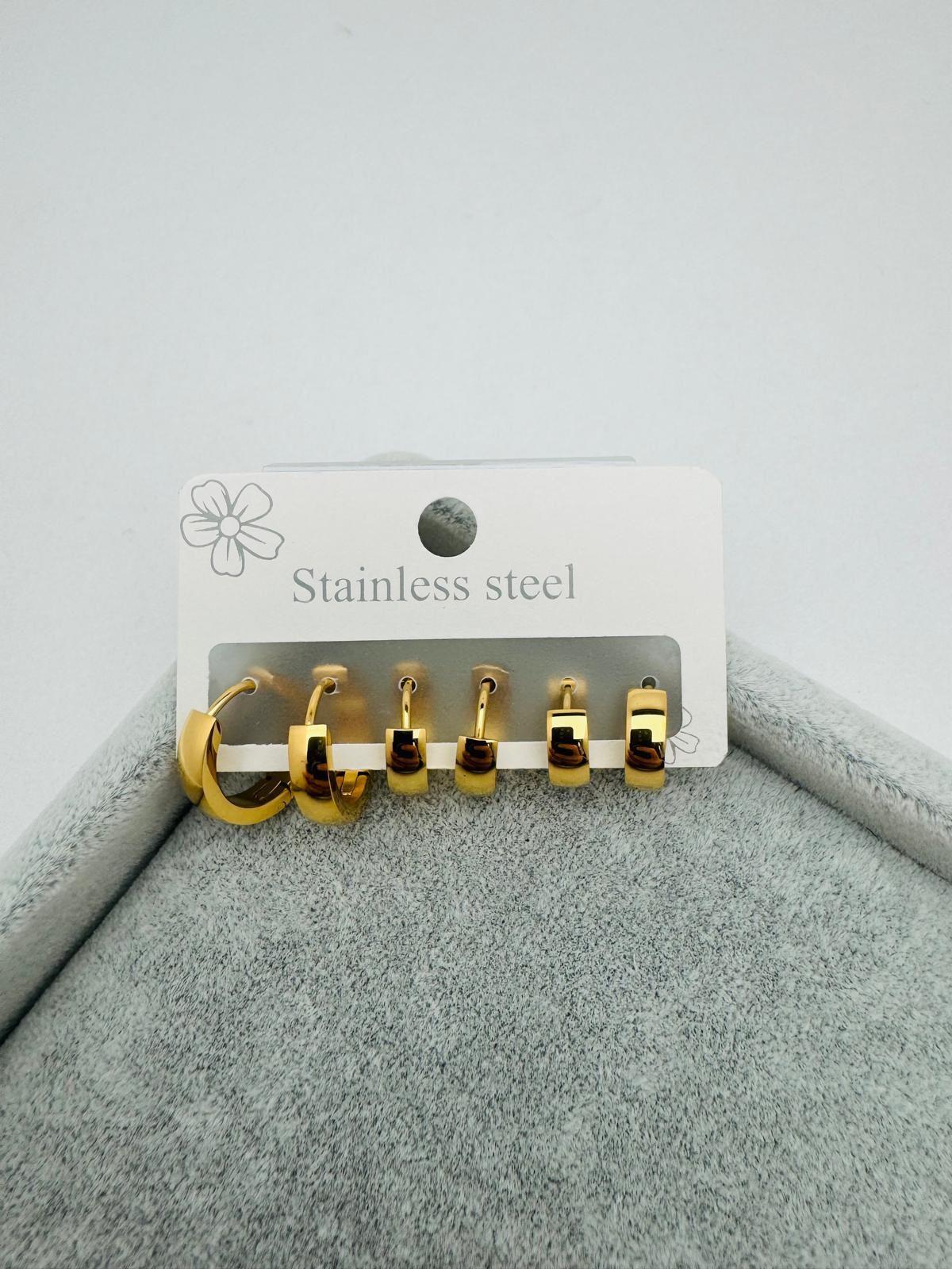 6'Lı Halka Set Çelik Küpe (Gold) Kp308