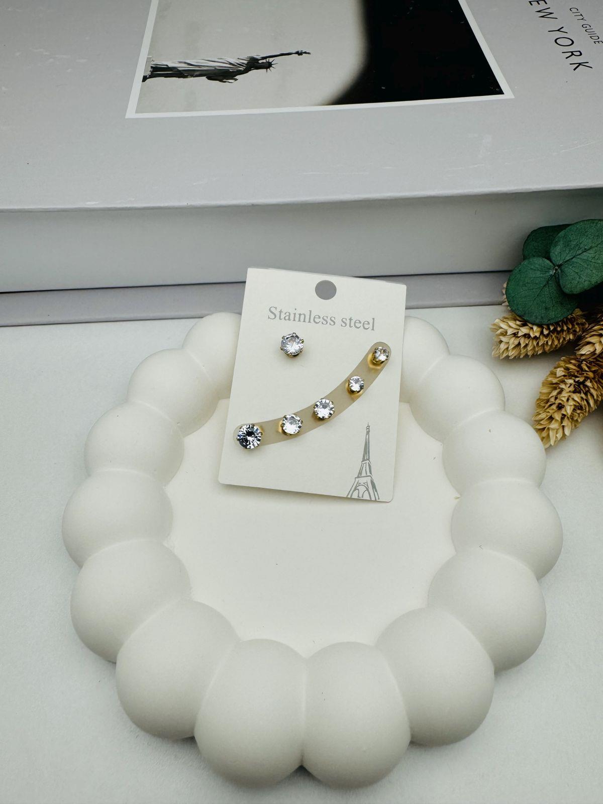 6'Lı Tektaş Set Çelik Küpe (Gold) Kp310