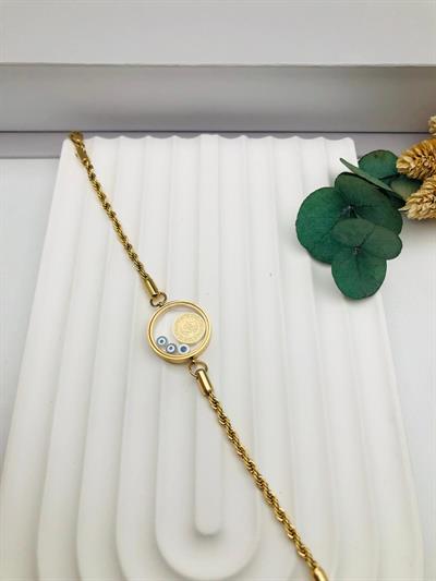 Altın Detaylı Cam Fanus Çelik Bileklik (Gold) Blk 2198