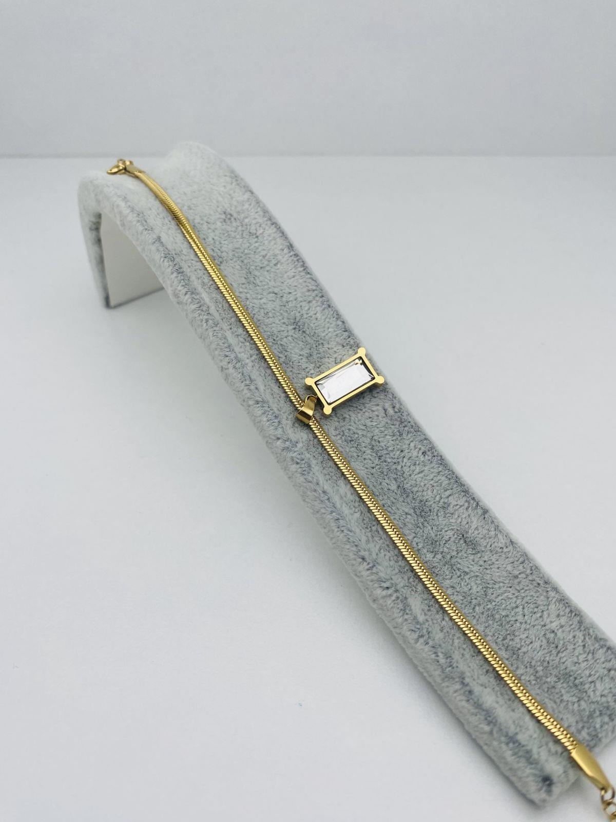 Beyaz Taşlı İtalyan Zincirli Çelik Bileklik (Gold) Blk 2106