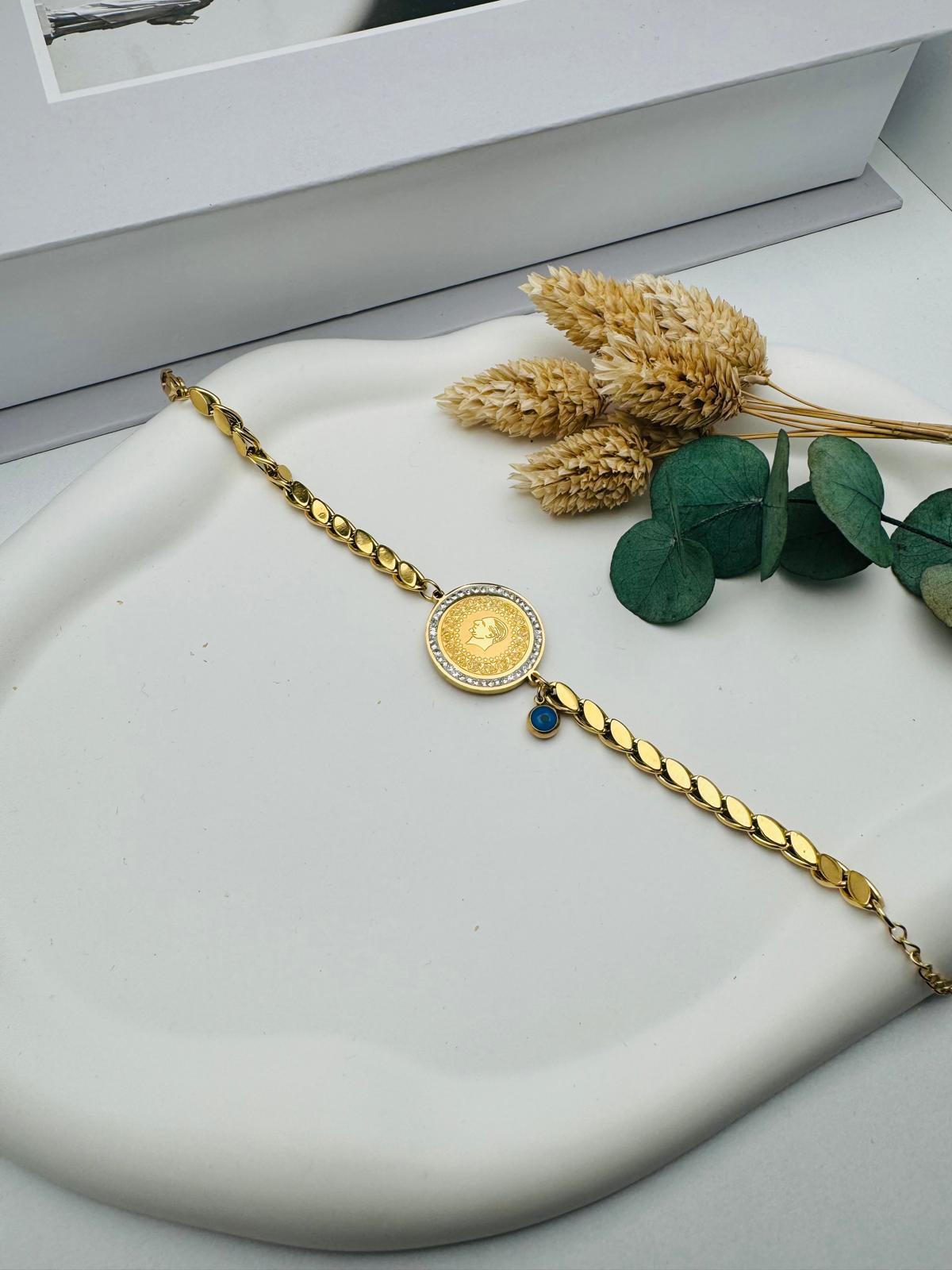 Çeyrekli  Arpa Çelik Bileklik (Gold) Blk 211187-01