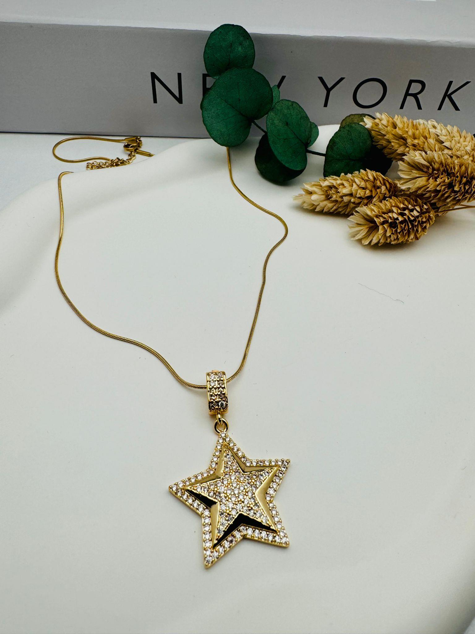 Charmlı Yıldız Çelik Kolye (Gold) 0106307