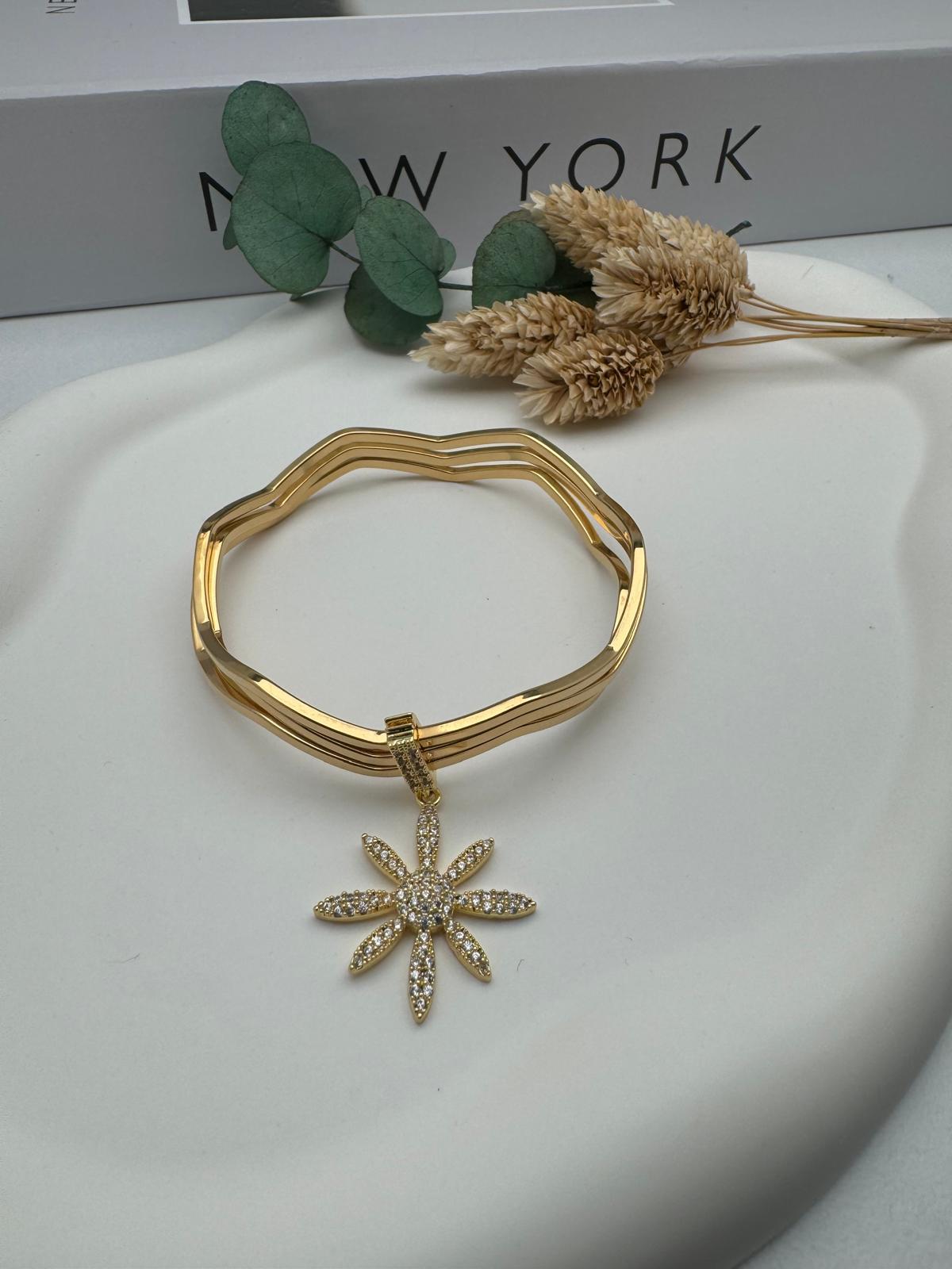 Charmlı Zigzag Ajda Çelik Bilezik (Gold) 22052