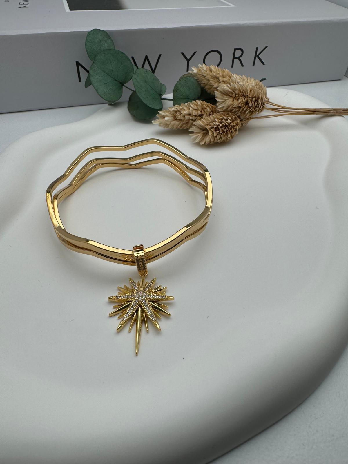 Charmlı Zigzag Ajda Çelik Bilezik (Gold) 22053