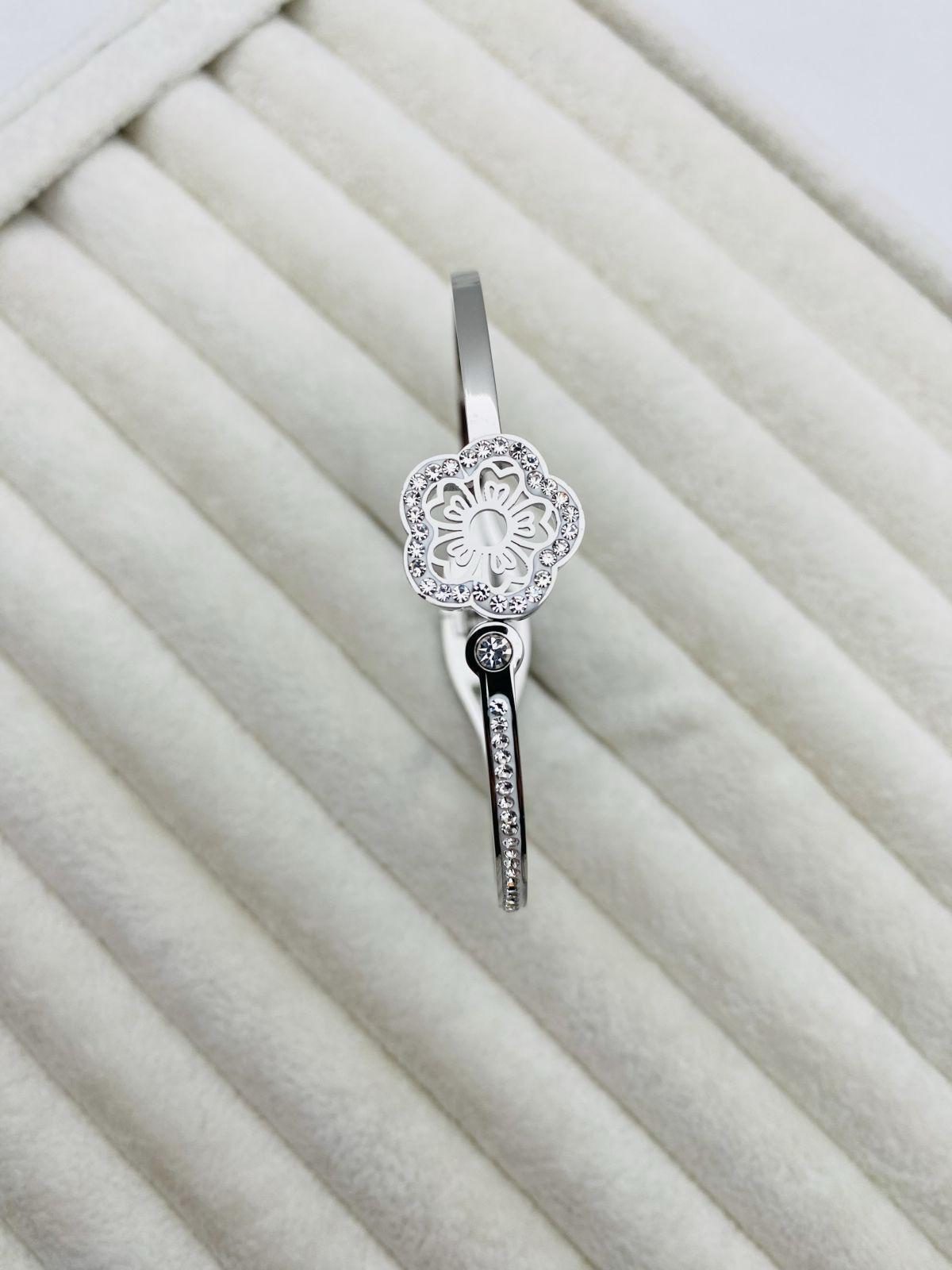 Çiçek Detaylı Çelik Kelepçe (Gümüş) 1976
