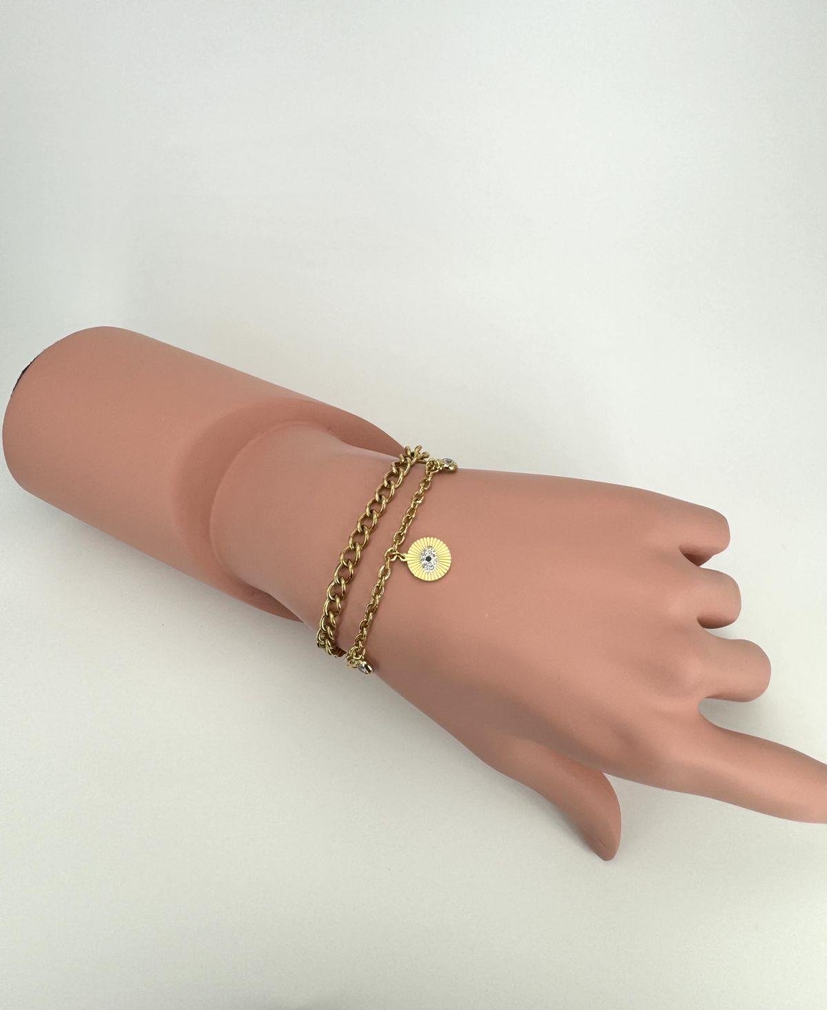 Göz Detaylı Zincirli Çelik Bileklik (Gold) Blk 2109
