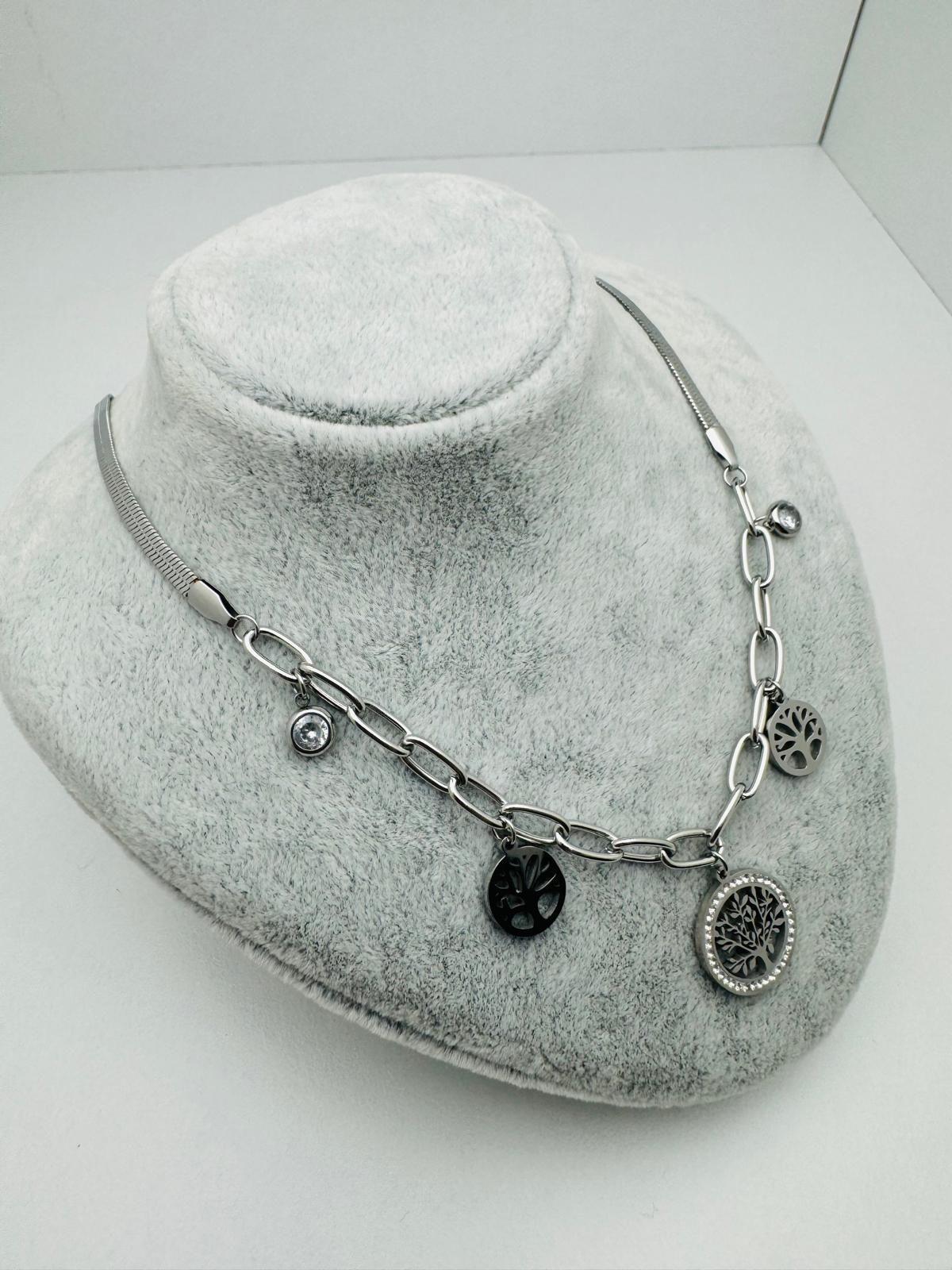 Hayat Ağacı Detaylı Çelik Kolye (Gümüş) 0106195
