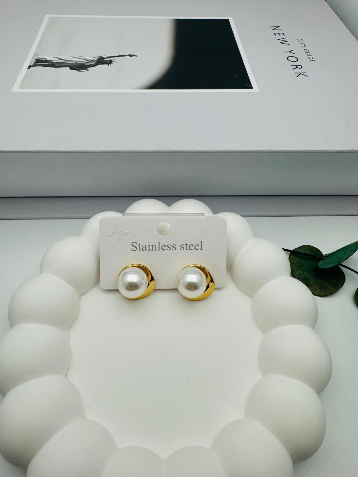 İnci Detaylı Çelik  Küpe KP433 (Gold)
