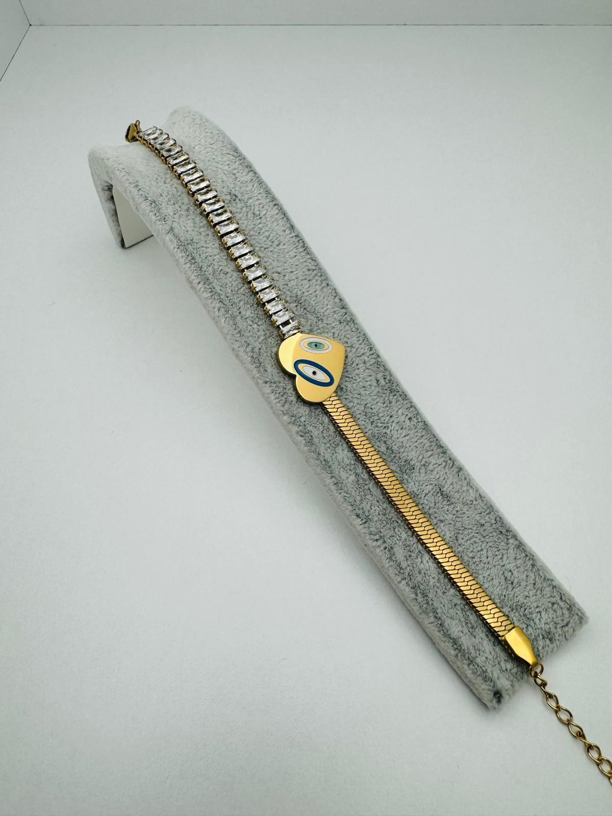 Kalp Detaylı İtalyan Çelik Bileklik (Gold) Blk 211163