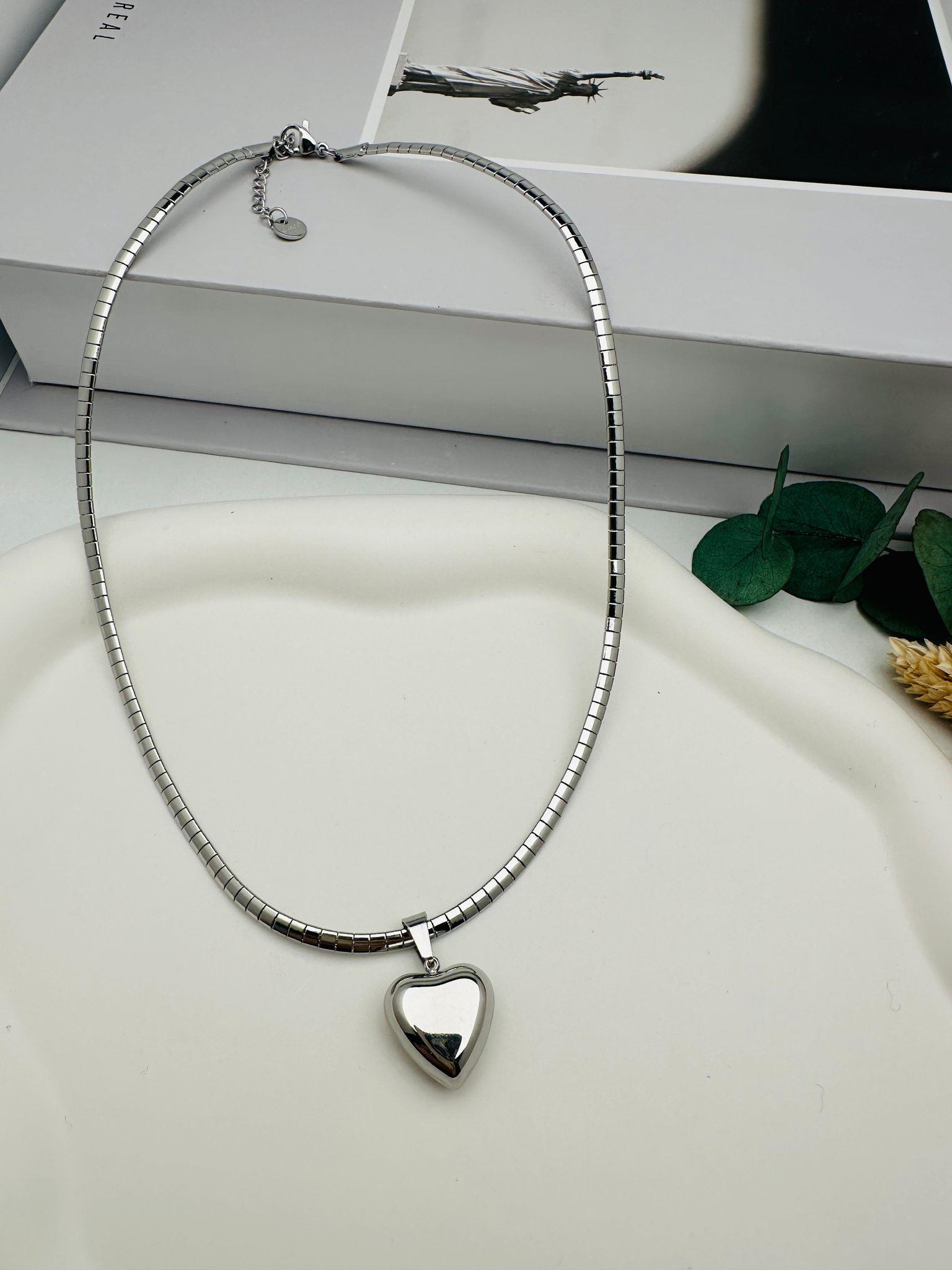 Kalpli Çelik Kolye (Gümüş) 0106323-1