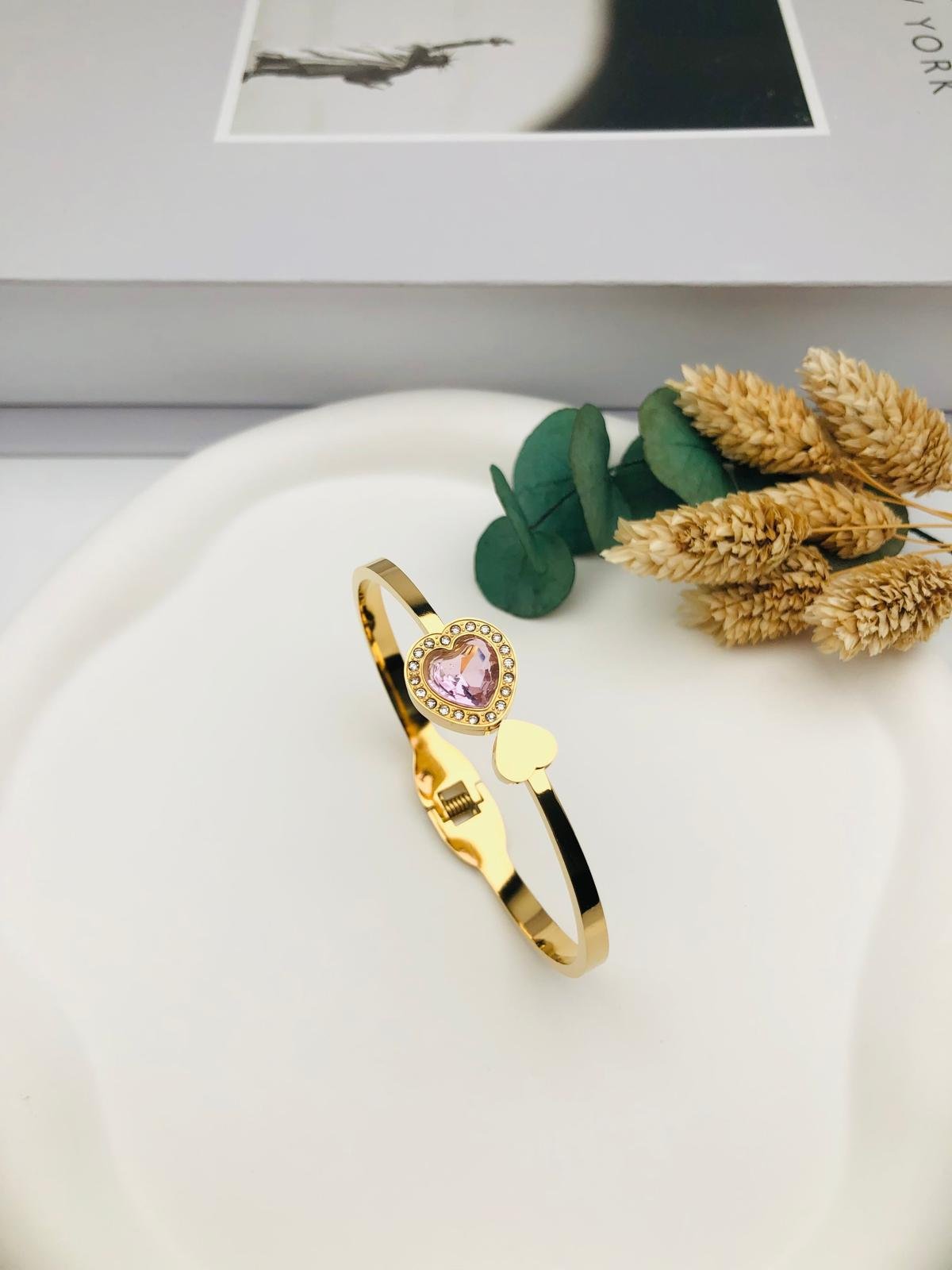 Kalpli Pembe Pandora Detaylı Çelik Kelepçe (Gold)2181