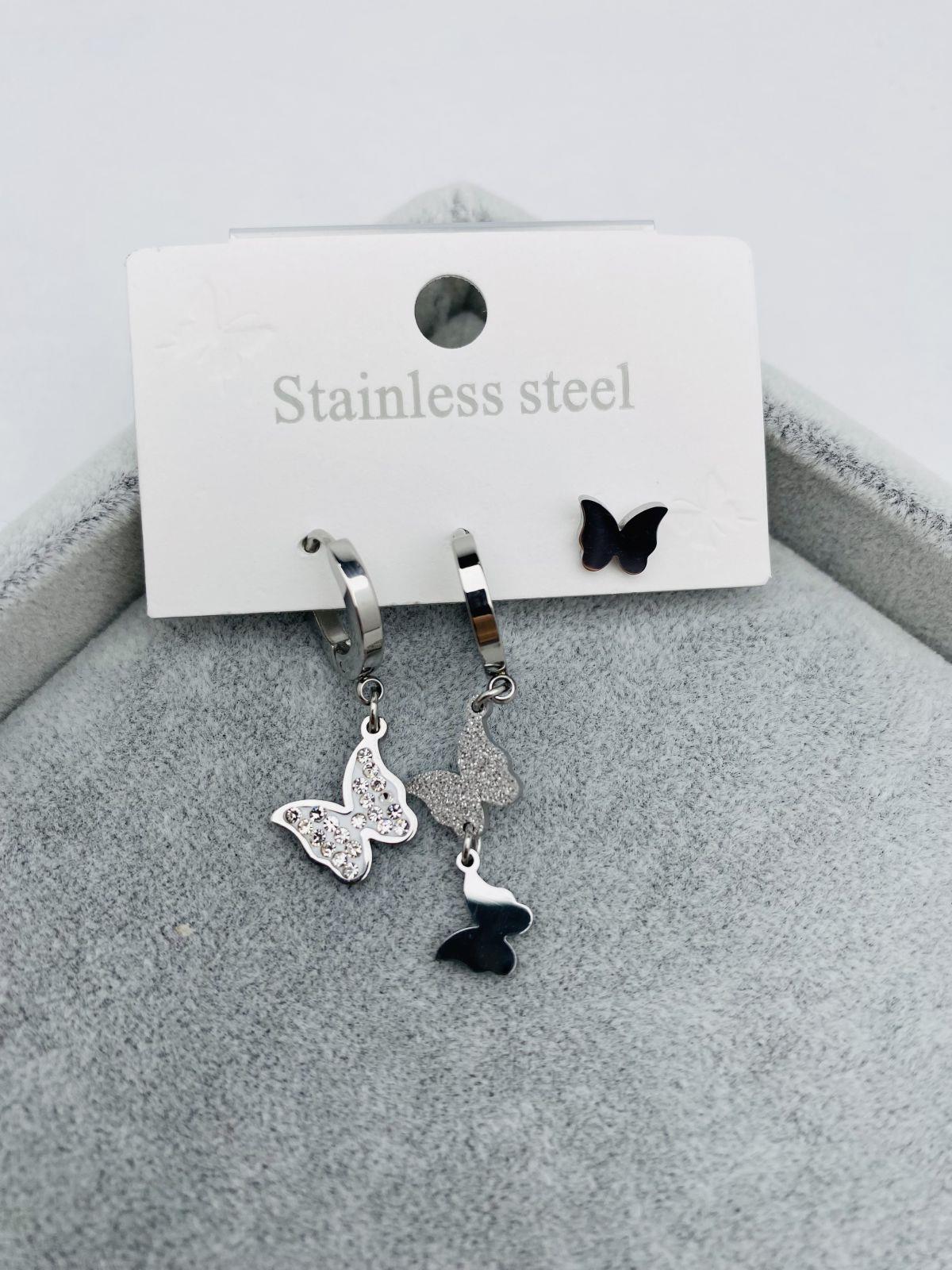Kelebek Detaylı 3'lü Küpe (Gümüş) KP41-2