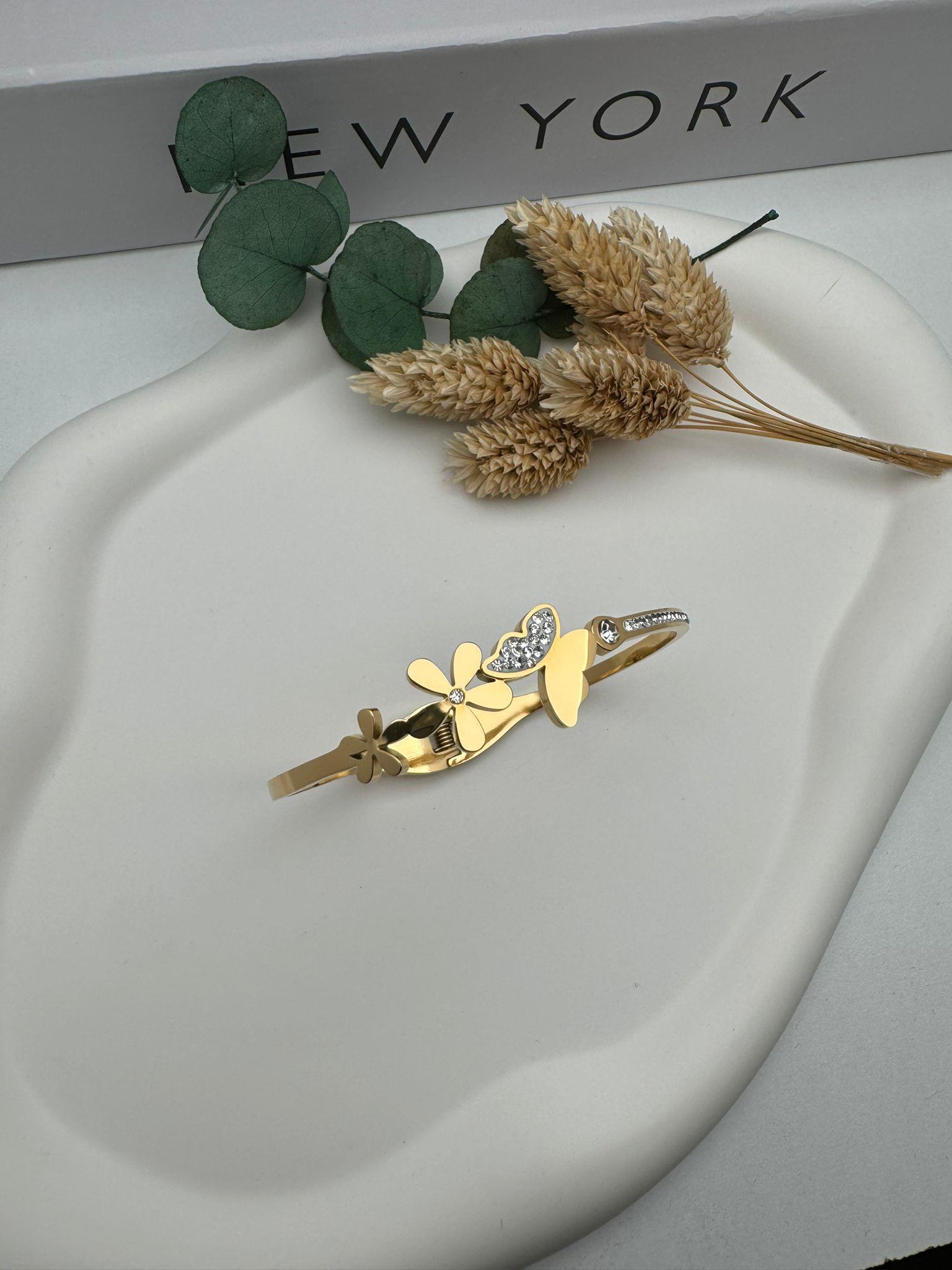Kelebek Detaylı Çelik Kelepçe (Gold) 22026