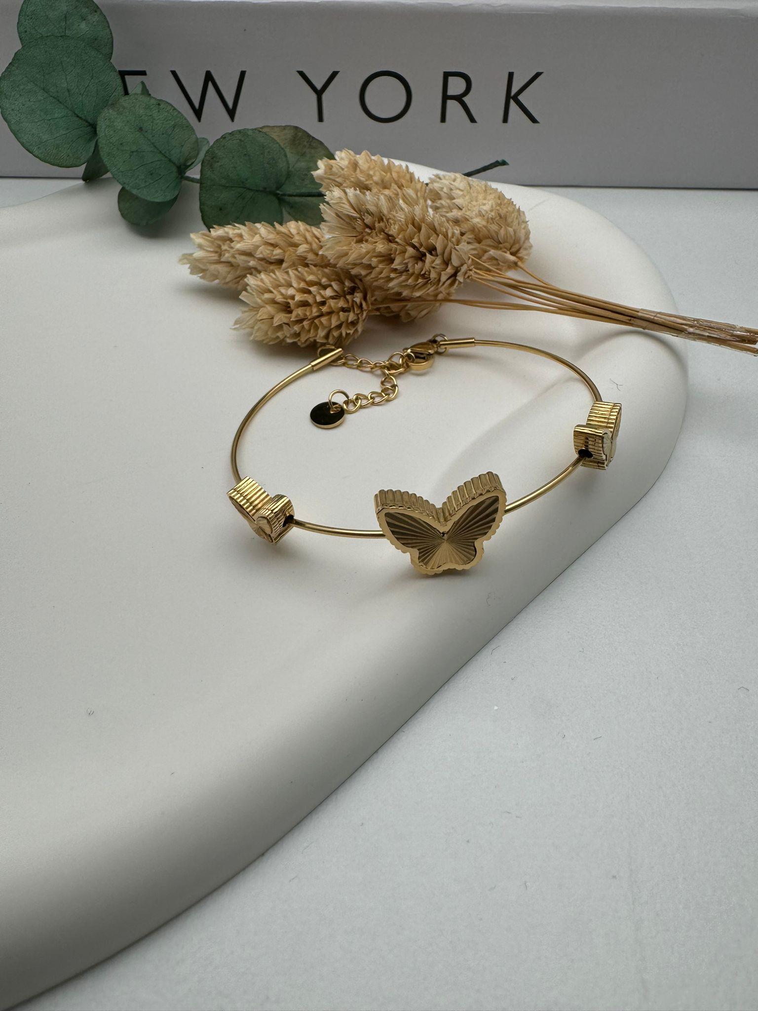 Kelebek Detaylı Çelik Kelepçe (Gold) 22029