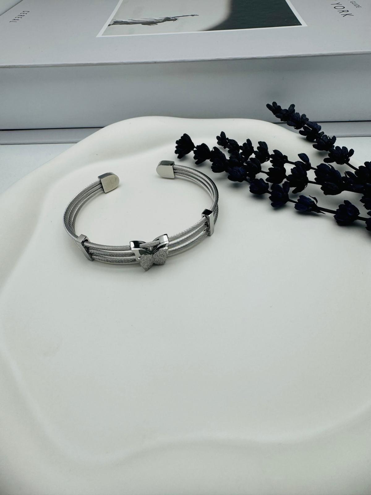 Kelebek Detaylı Çelik Kelepçe (Gümüş) 22006
