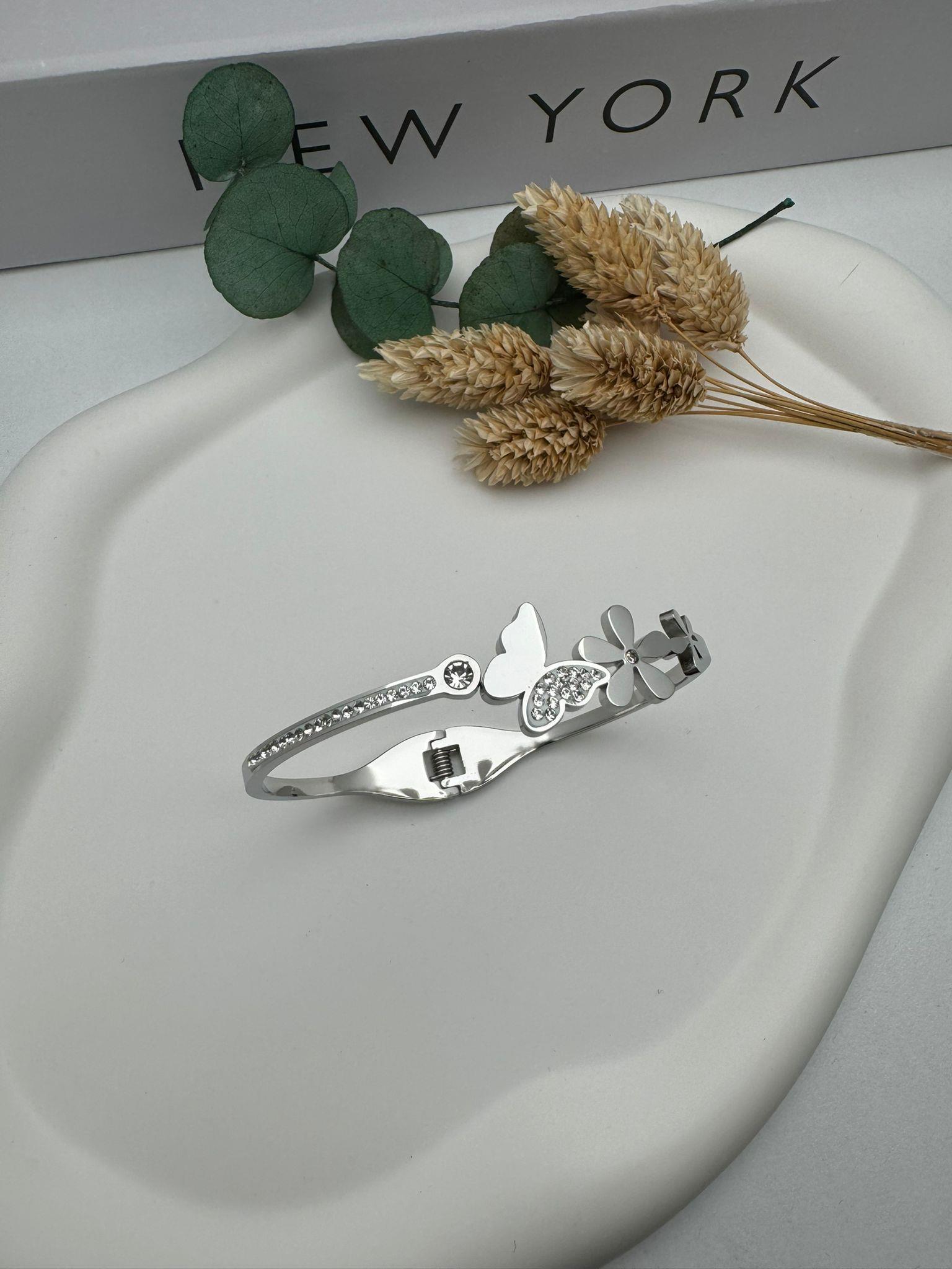 Kelebek Detaylı Çelik Kelepçe (Gümüş) 22026-01