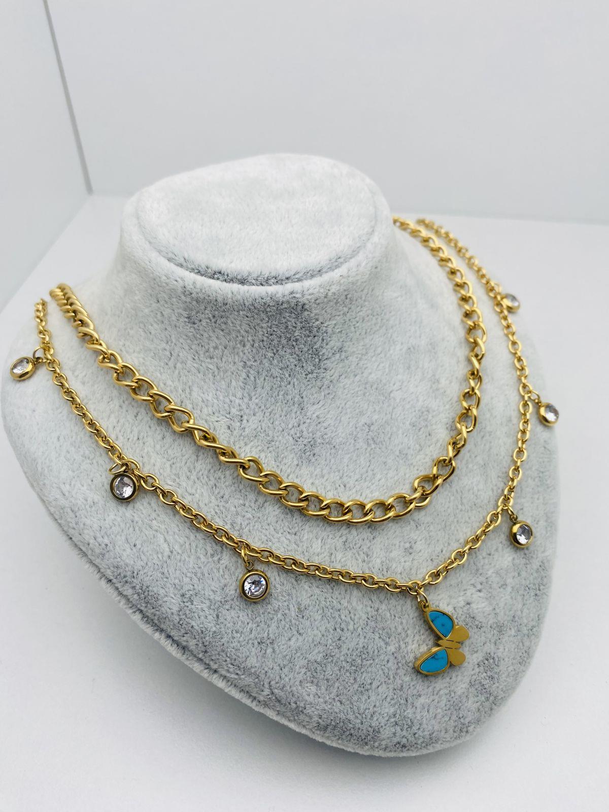 Kelebek Detaylı Çelik Kolye (Gold) 00038