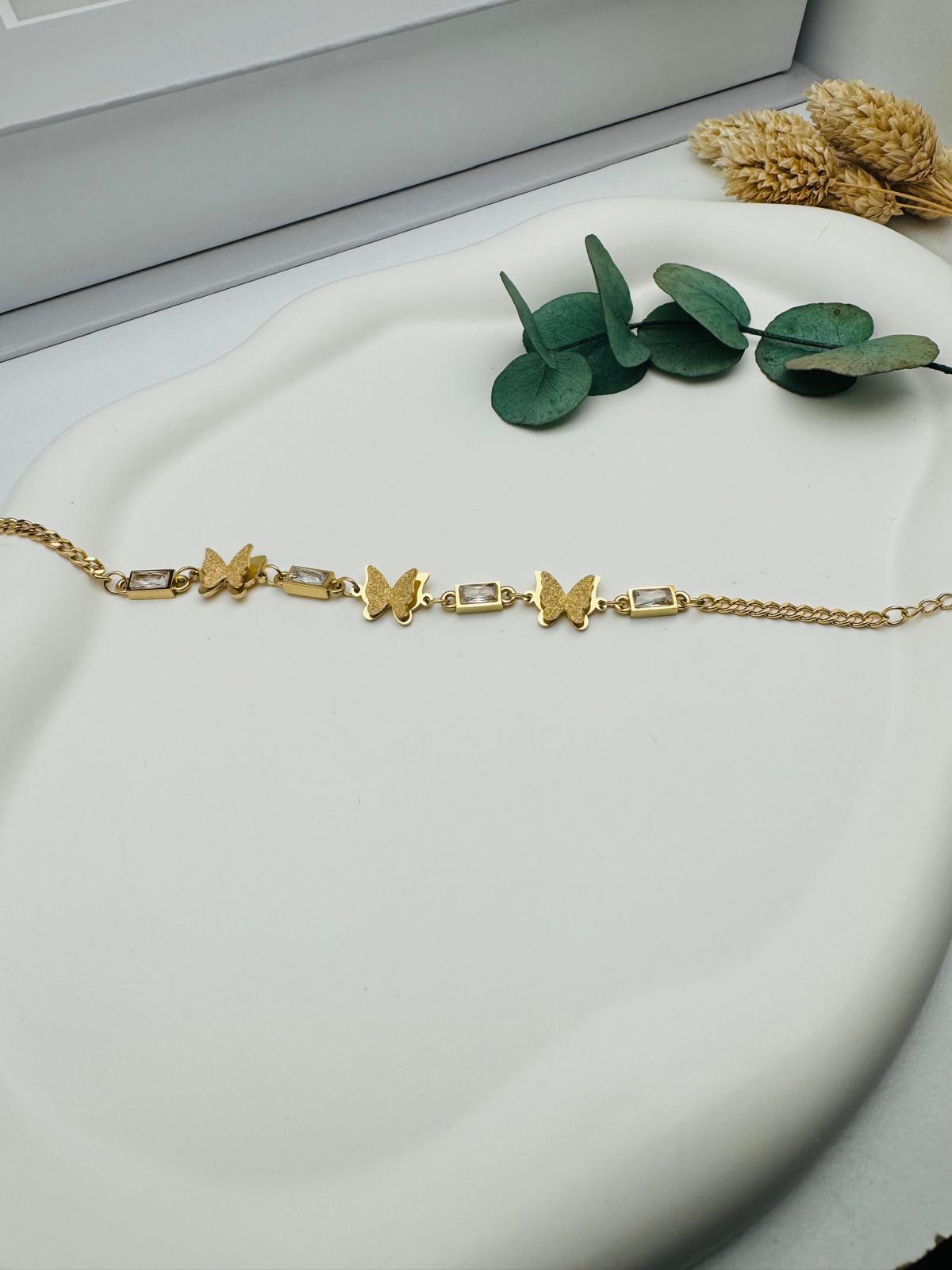 Kelebek Deteyalı Taşlı Çelik Bileklik (Gold) Blk 358
