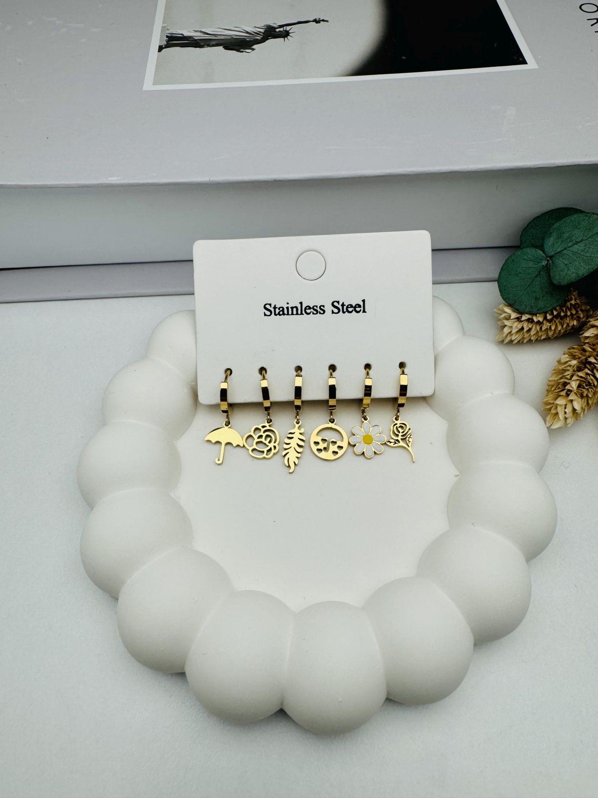 Kp229 6'lı Set Çelik Küpe (Gold)