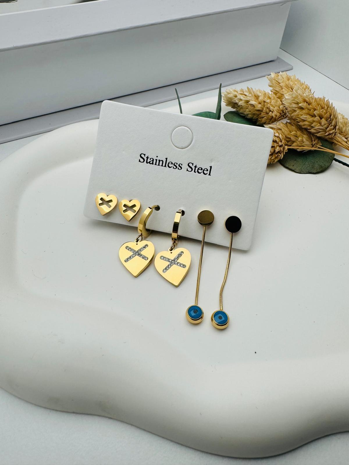 Kp235 6'lı Set Çelik Küpe (Gold)