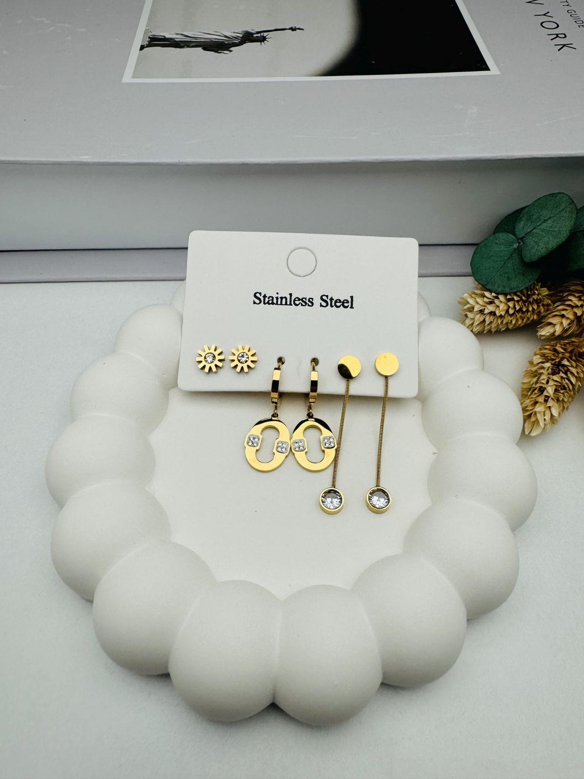 Kp238 6'lı Set Çelik Küpe (Gold)