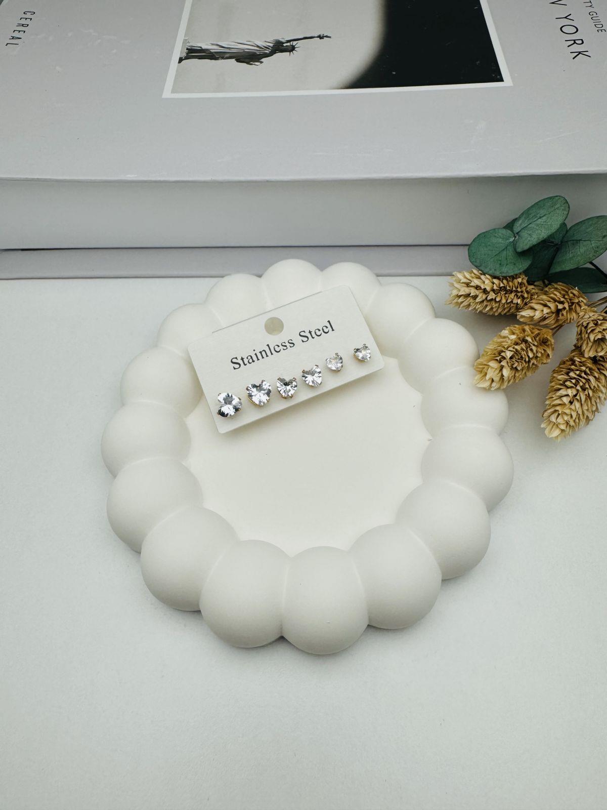 Kp242 6'lı set Beyaz Taşlı Kalp Çelik Küpe (Gold)