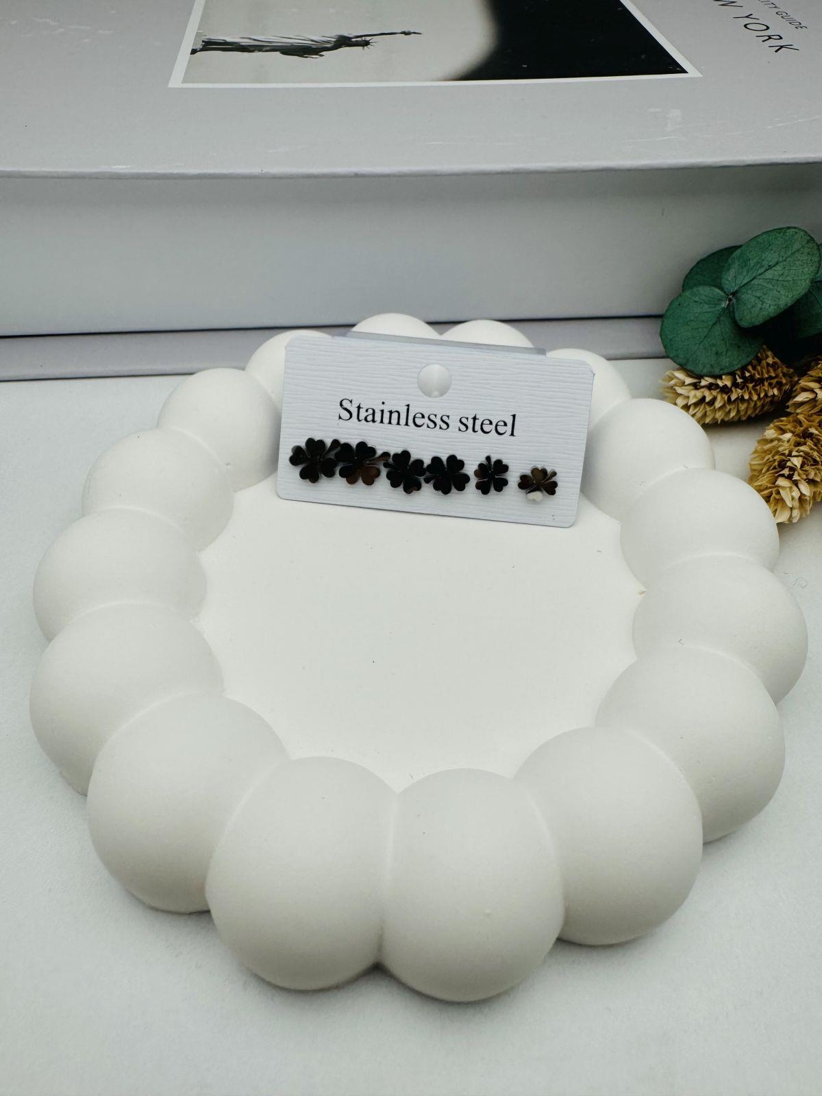 Kp245-01 6'lı set Yonca Çelik Küpe (Gümüş)
