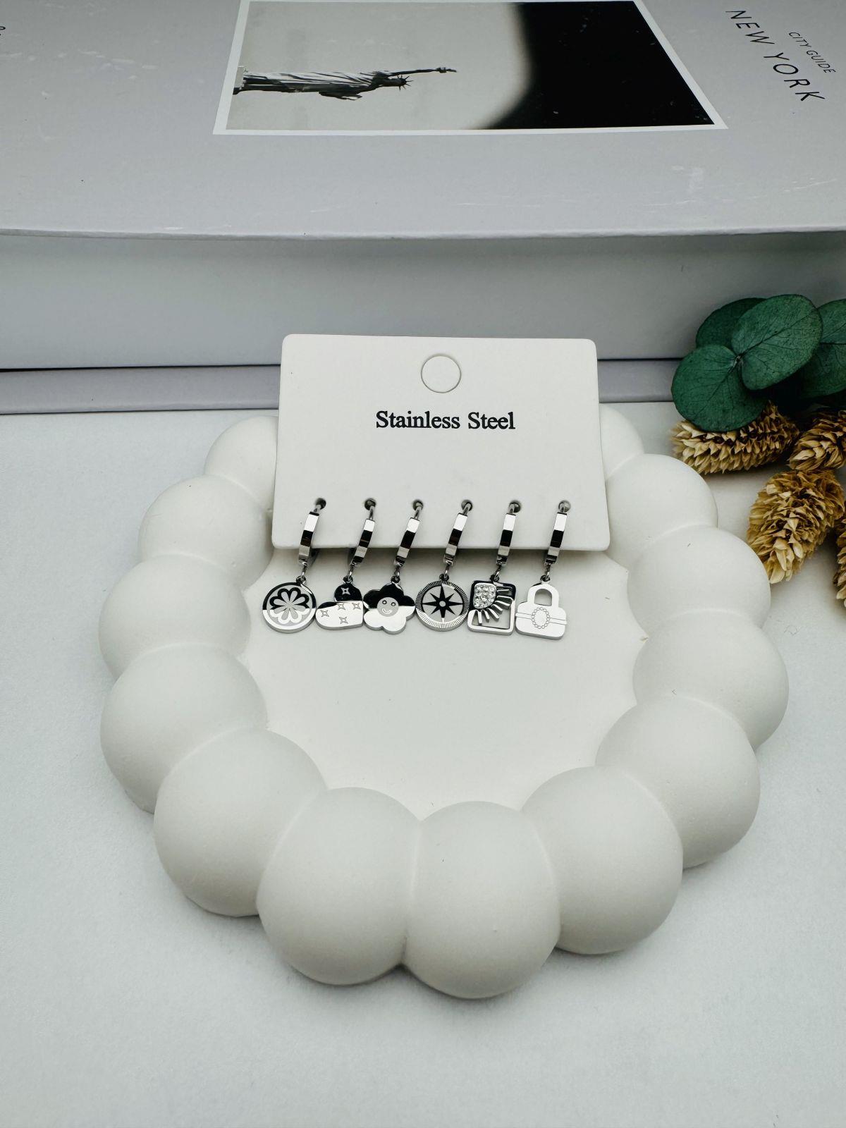 Kp284-1 6 Lı Set Çelik Küpe (Gümüş)