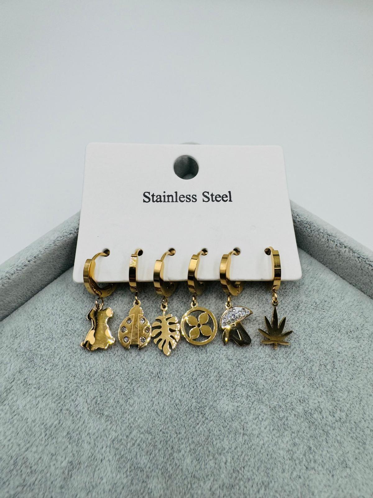 Kp288 6 Lı Set Çelik Küpe (Gold)
