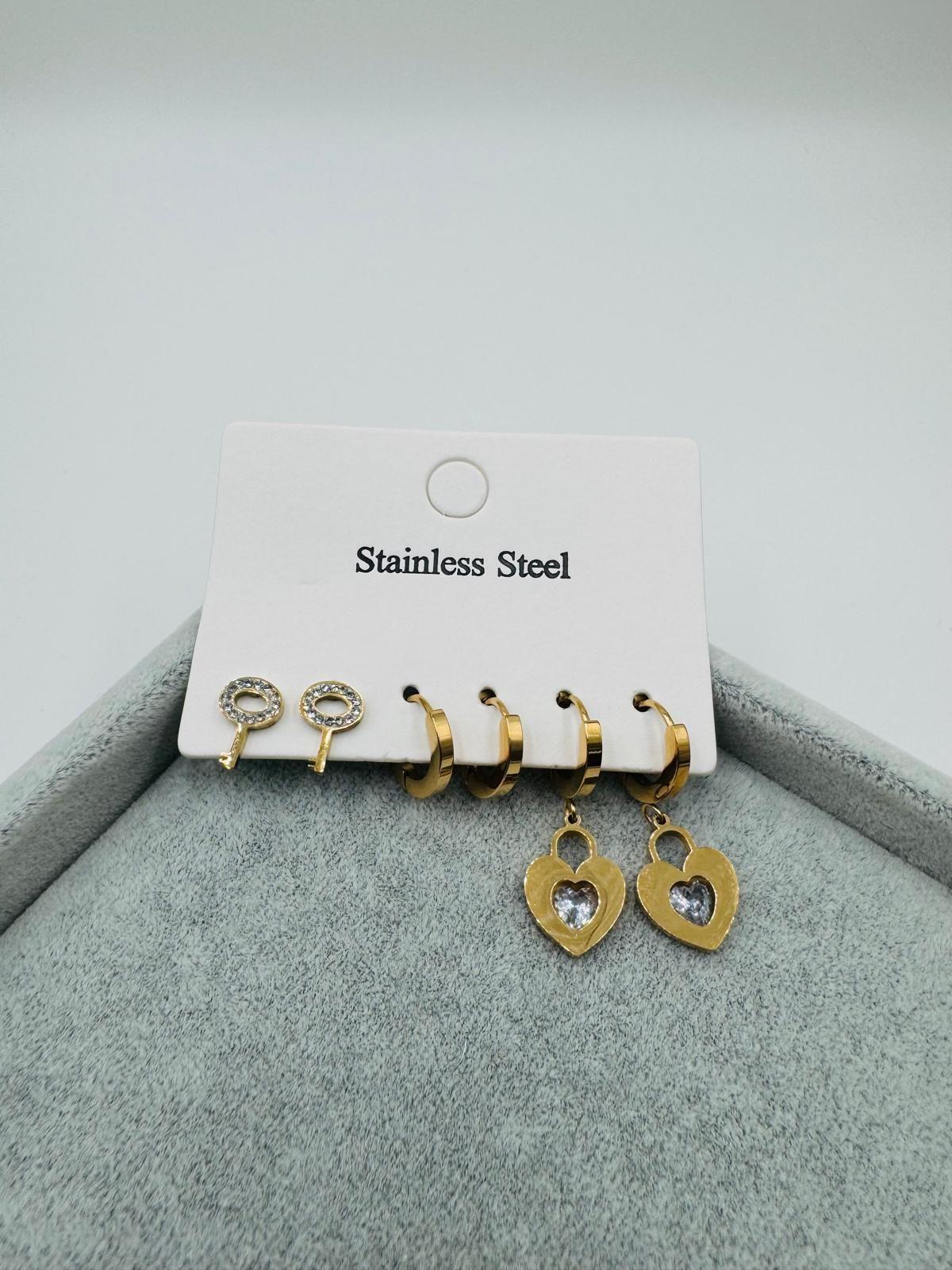 Kp289 6 Lı Set Çelik Küpe (Gold)