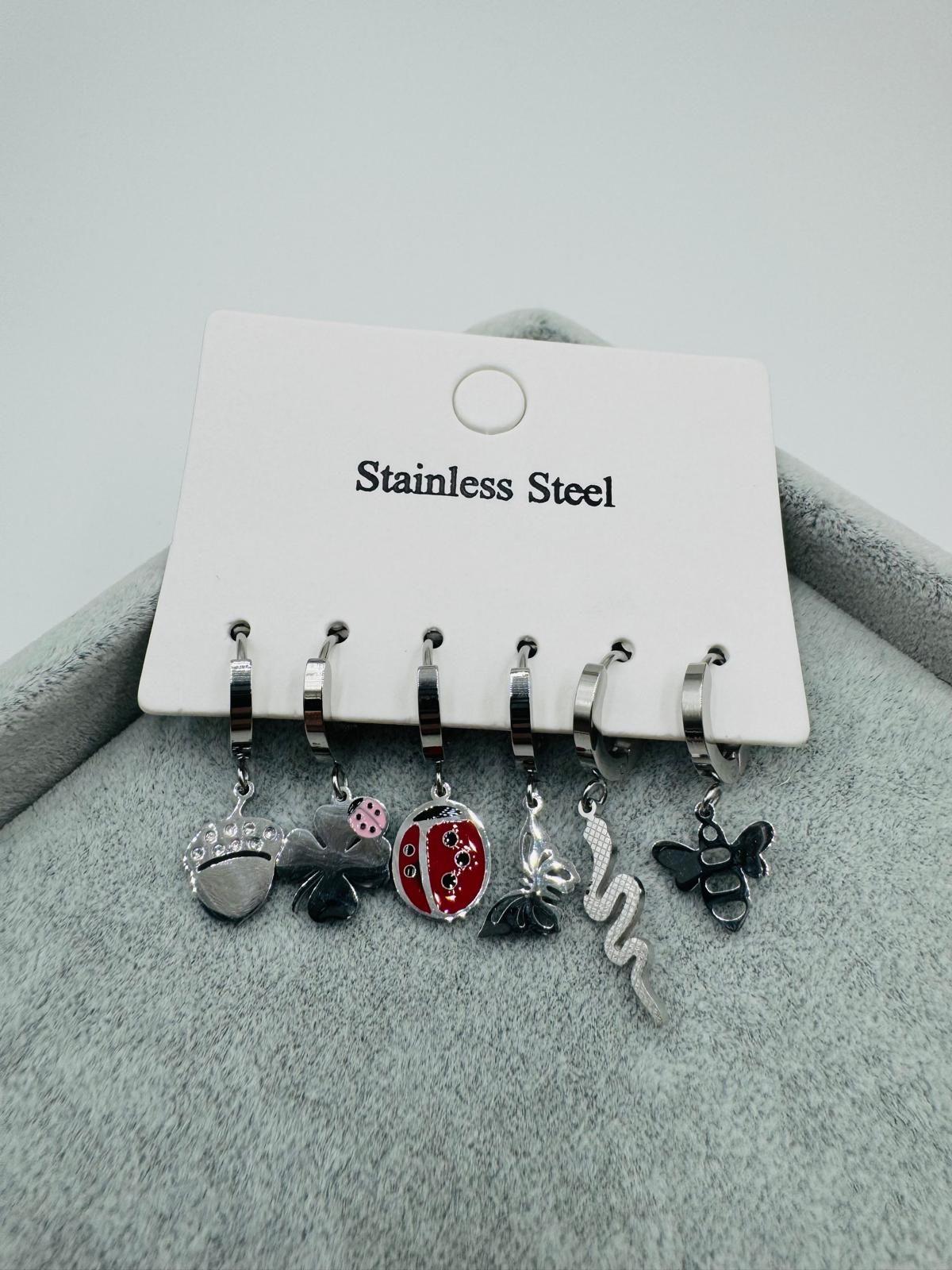 Kp291-1 6 Lı Set Çelik Küpe (Gümüş)