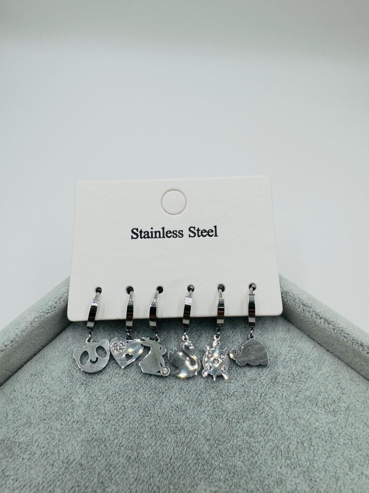 Kp294-1 6 Lı Set Çelik Küpe (Gümüş)