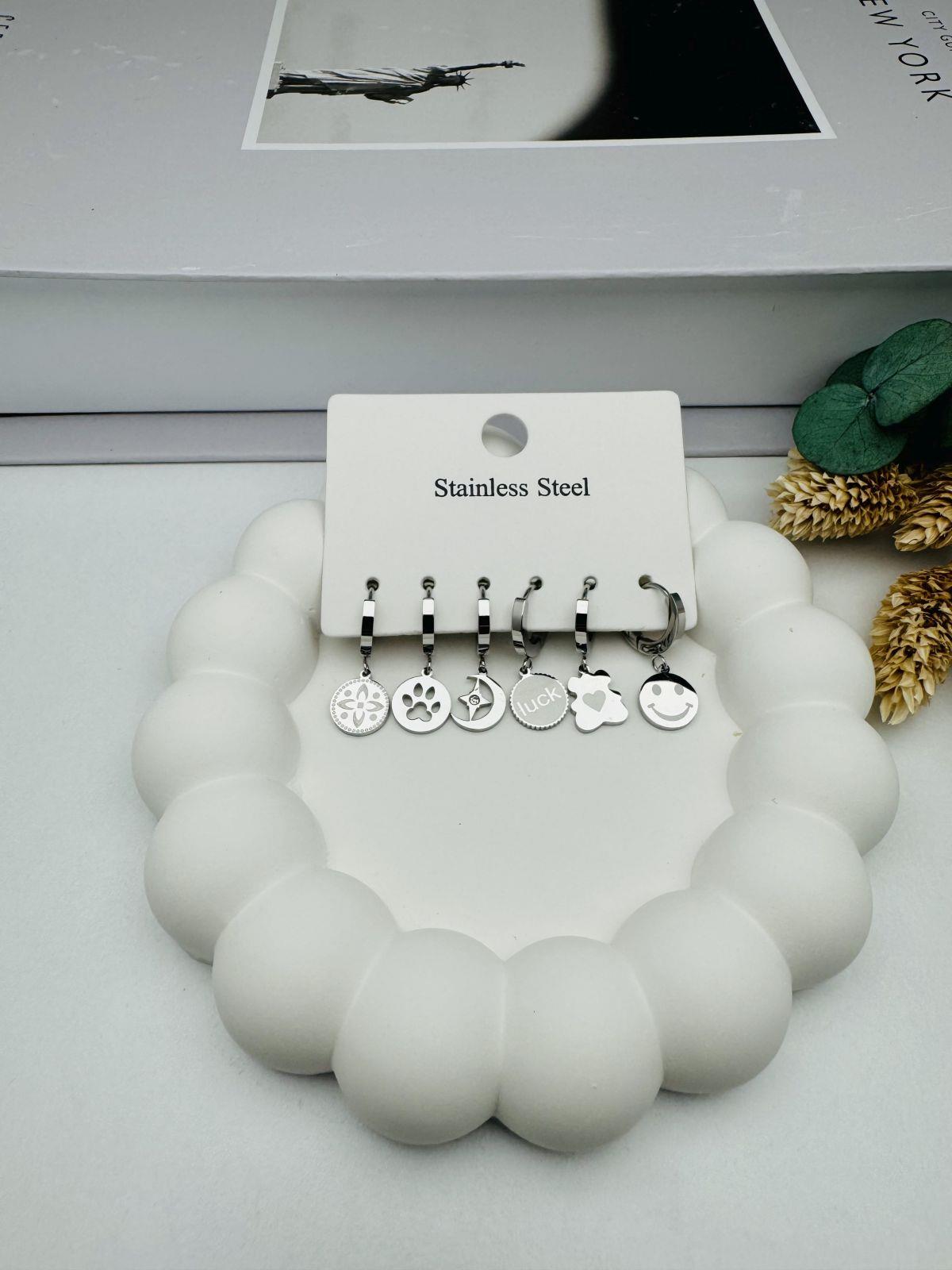 Kp295-1 6 Lı Set Çelik Küpe (Gümüş)