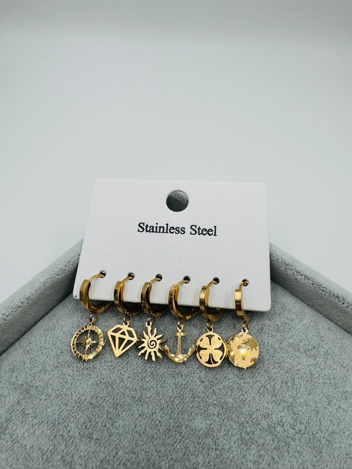 Kp301 6 Lı Set Çelik Küpe (Gold)