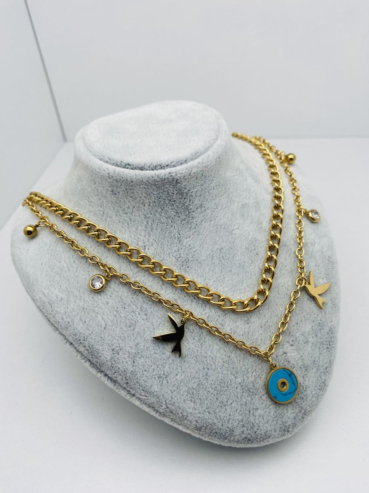 Kuş Detaylı Çelik Kolye (Gold) 010613