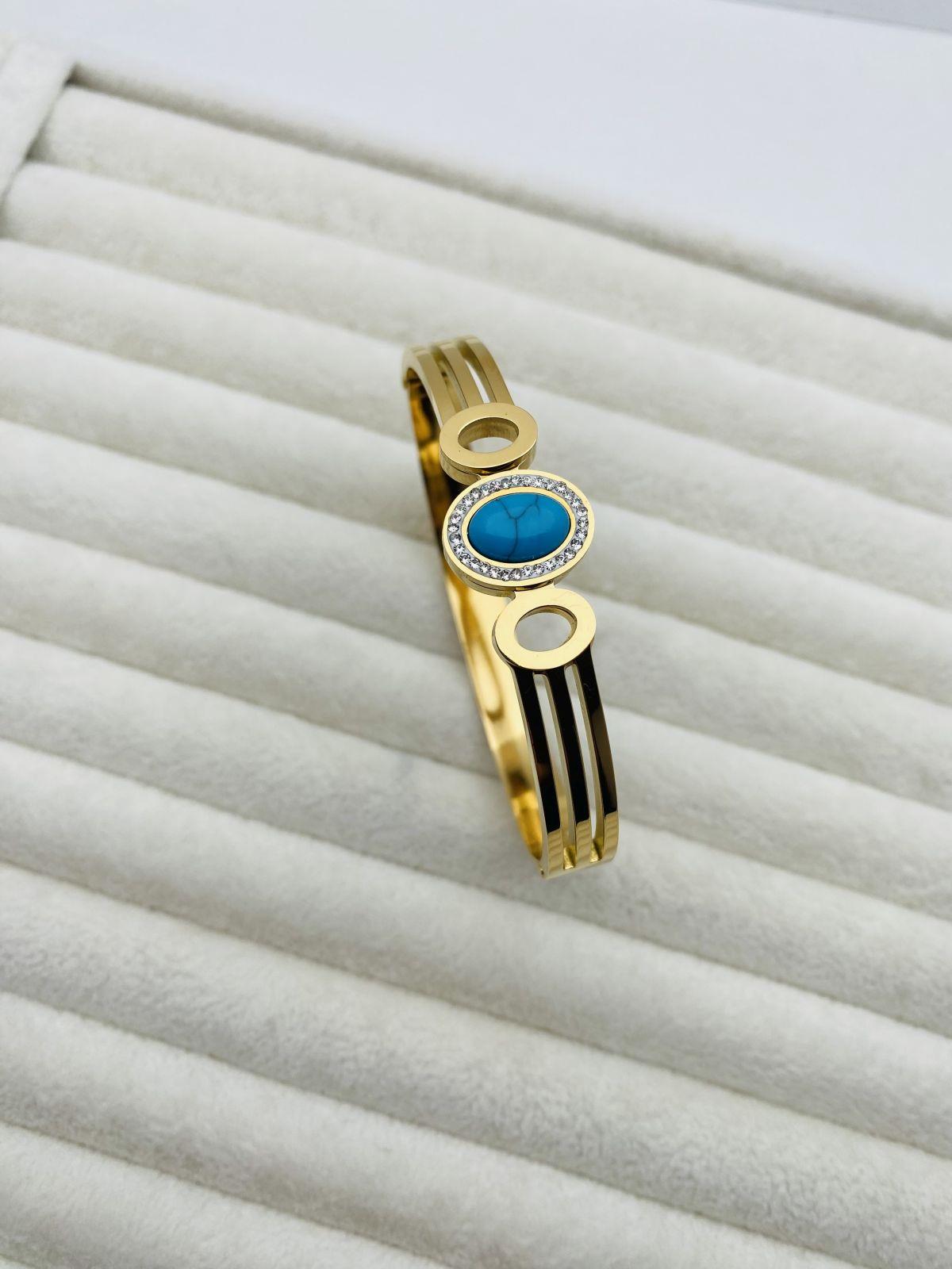 Mavi Detaylı Taşlı Çelik Kelepçe (Gold)1575