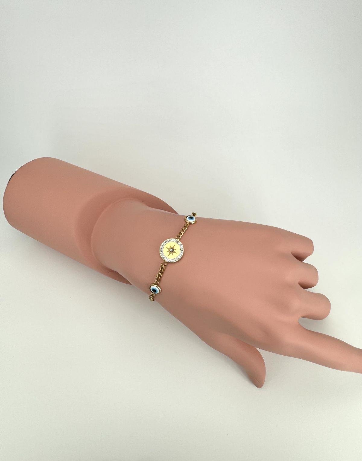 Nazar Boncuk Detaylı Çelik Bileklik (Gold) Blk 2085