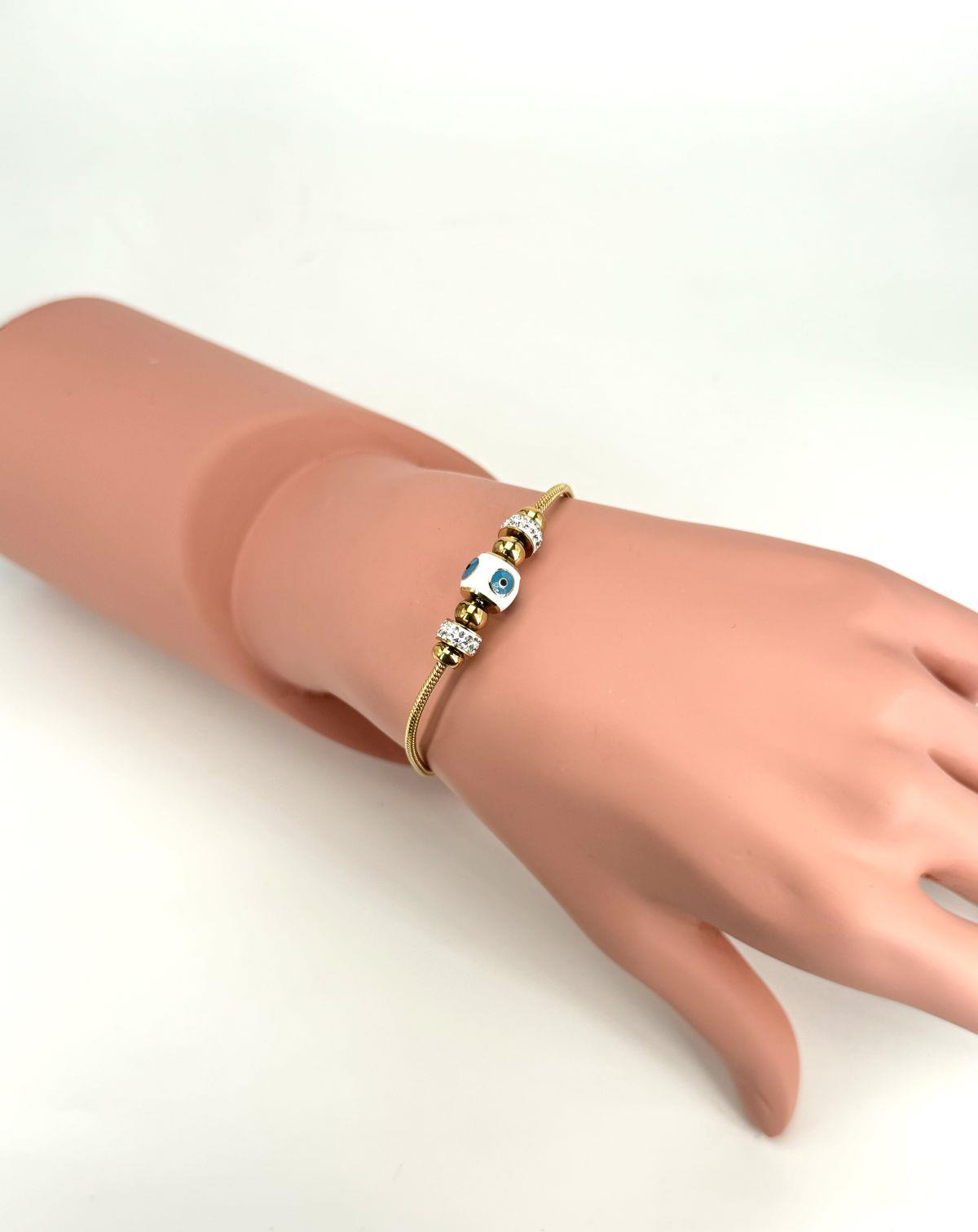 Nazar Boncuk Detaylı Pandora Çelik Bileklik (Gold) Blk 2158
