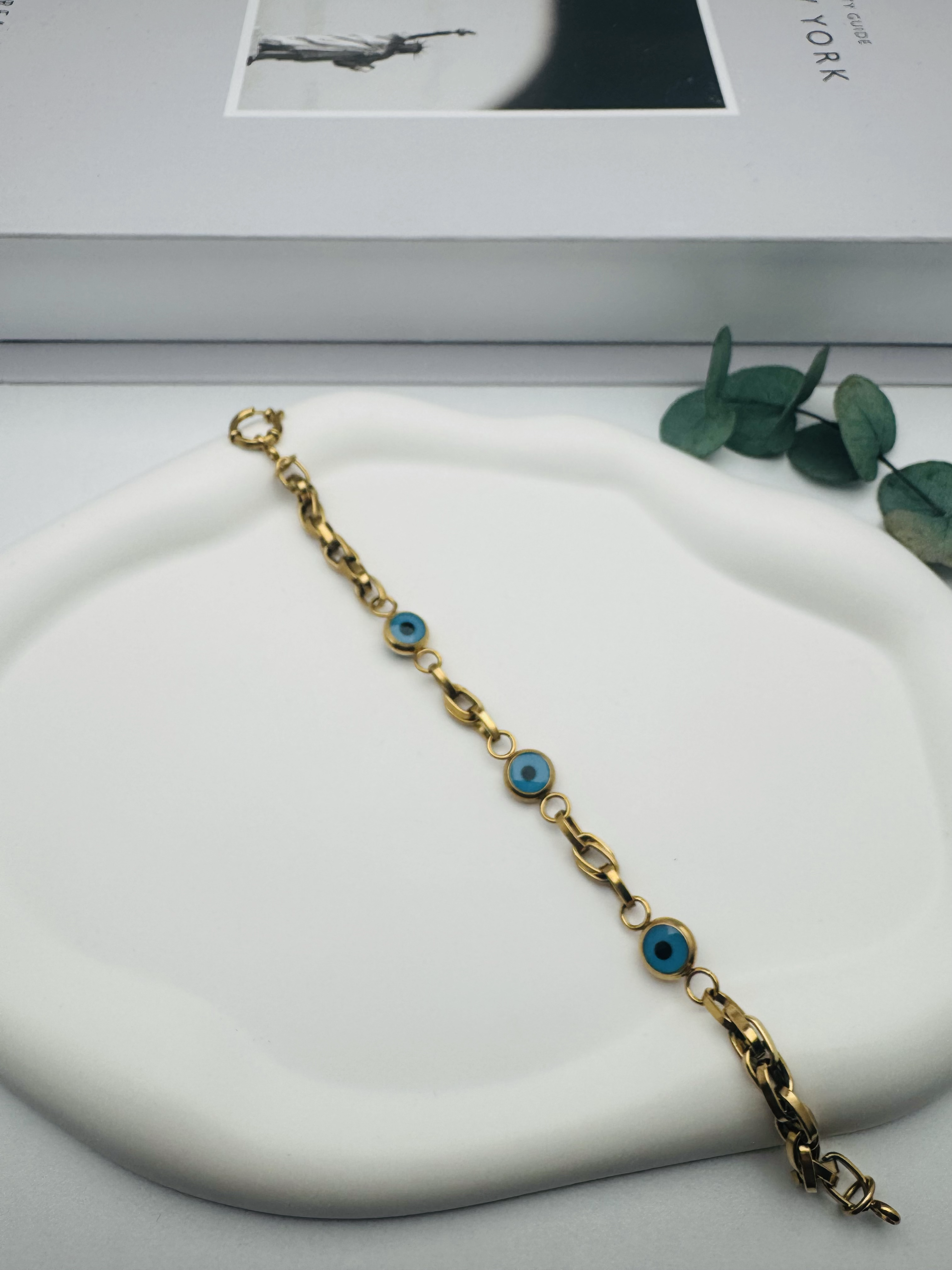 Nazar Boncuklu Çelik Bileklik (Gold) Blk 211108