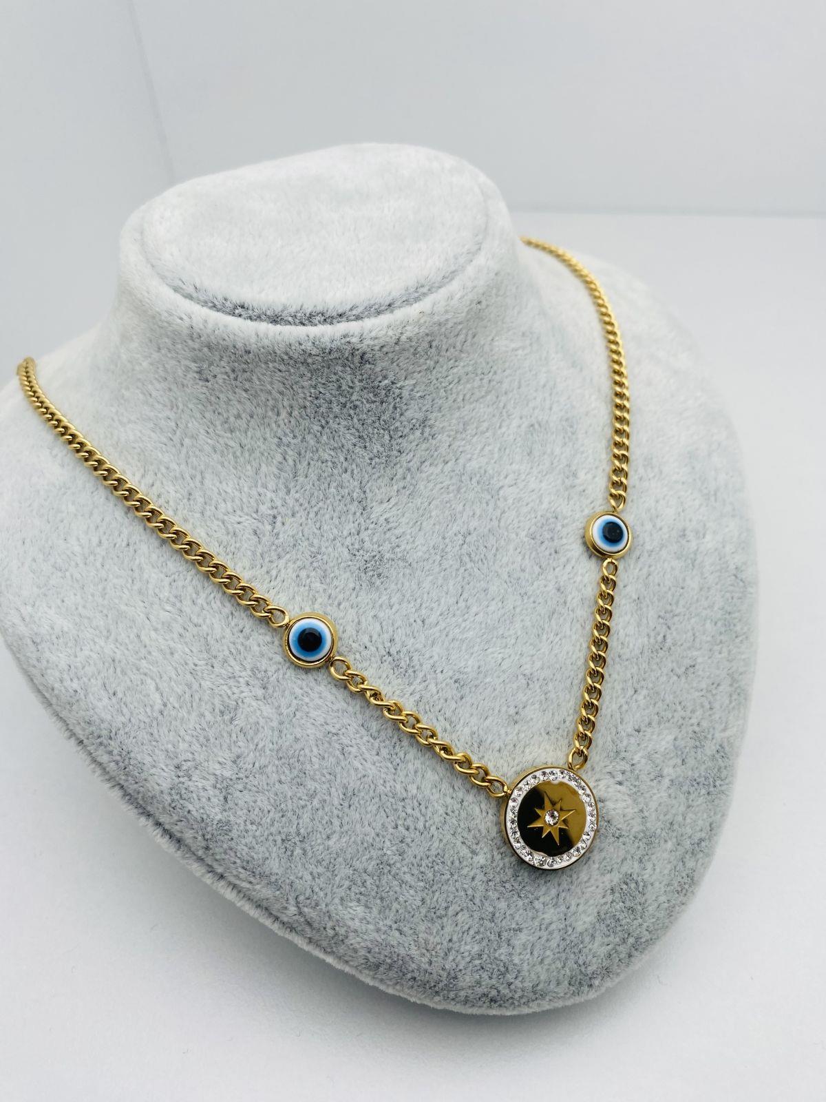Nazar Boncuklu Çelik Kolye(gold)010623
