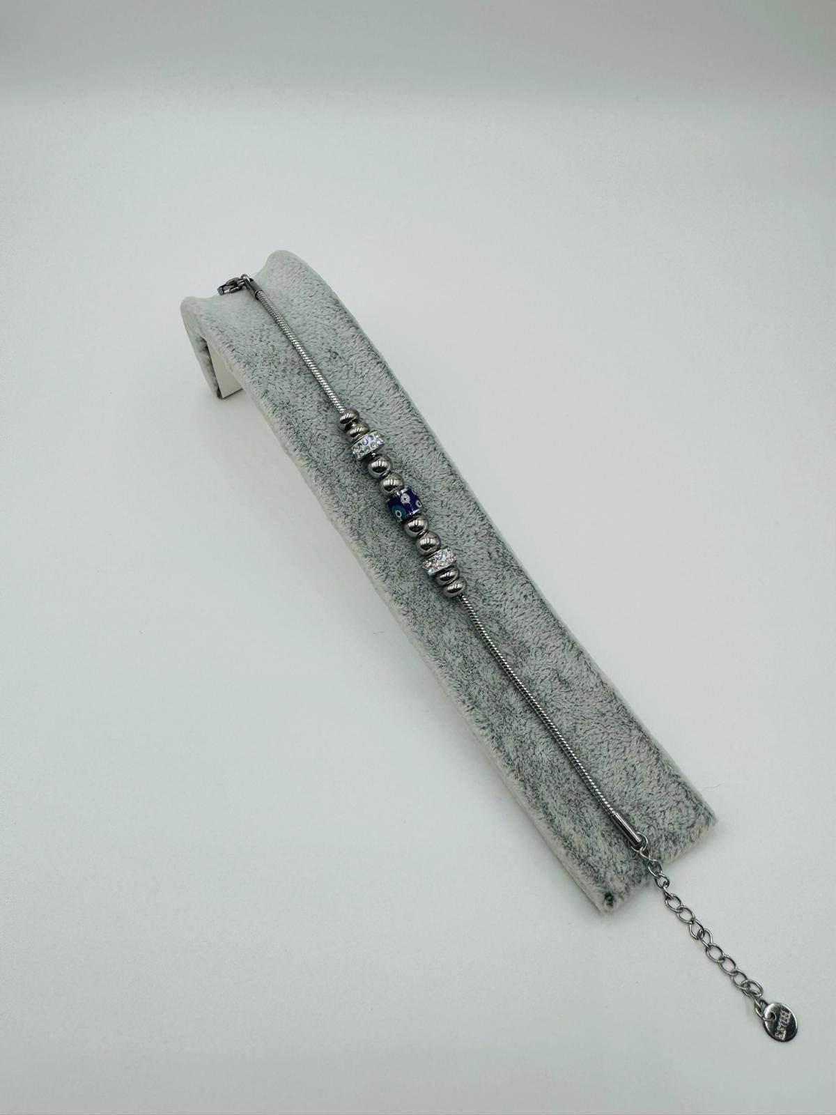 Nazar Boncuklu Çelik Pandora Bileklik (Gümüş) Blk 211114-01