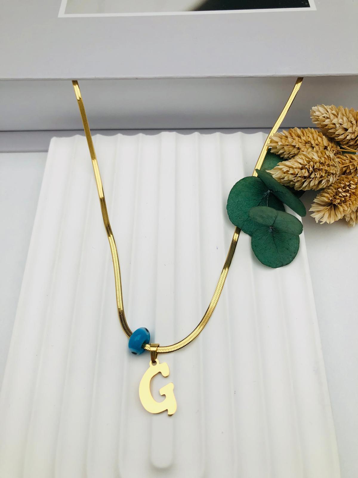 Nazar Boncuklu İtalyan (G) Harf Çelik Kolye 45 cm (Gold) 0106241