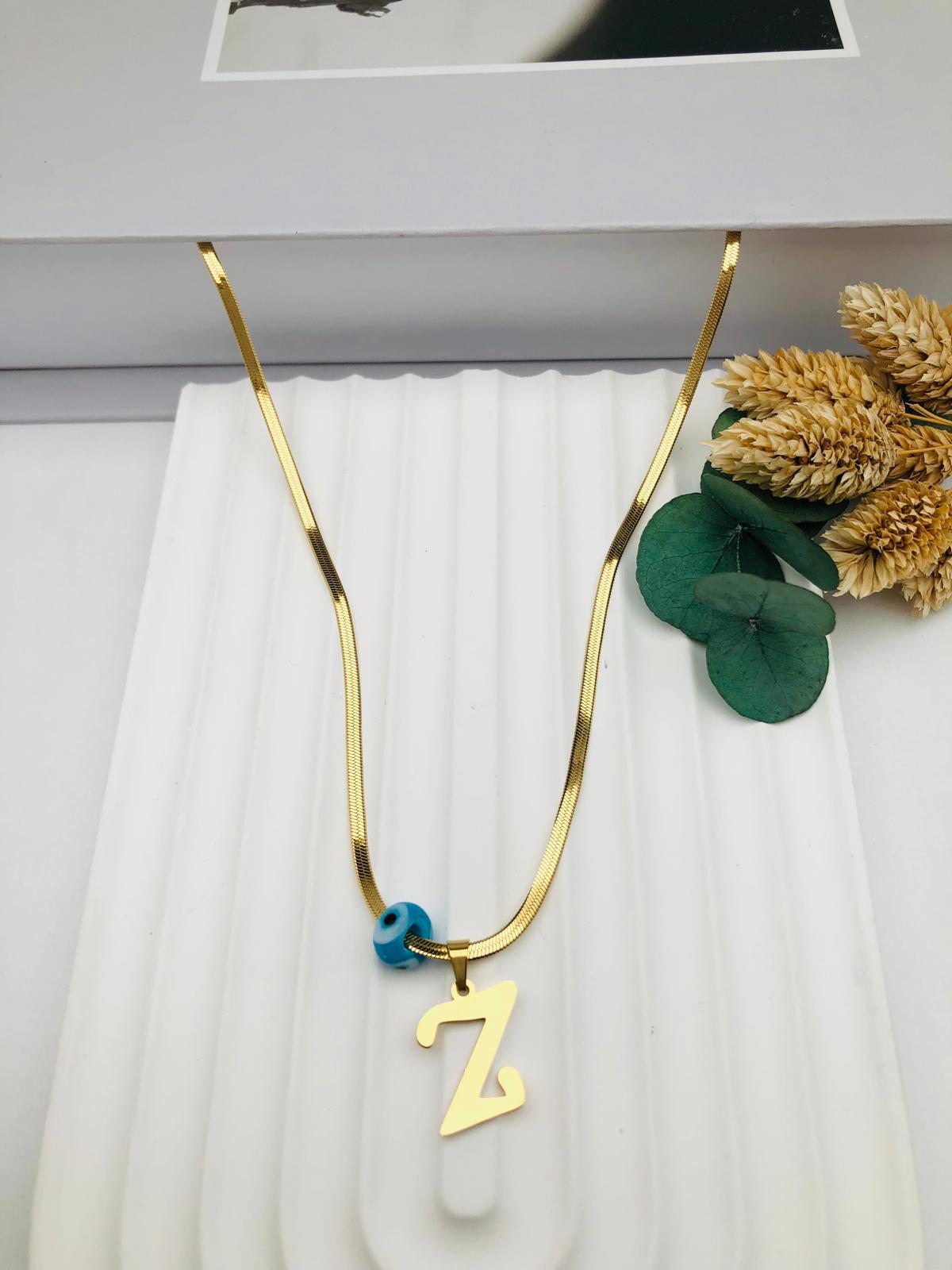 Nazar Boncuklu İtalyan (Z) Harf Çelik Kolye Harf 45 cm (Gold) 0106235